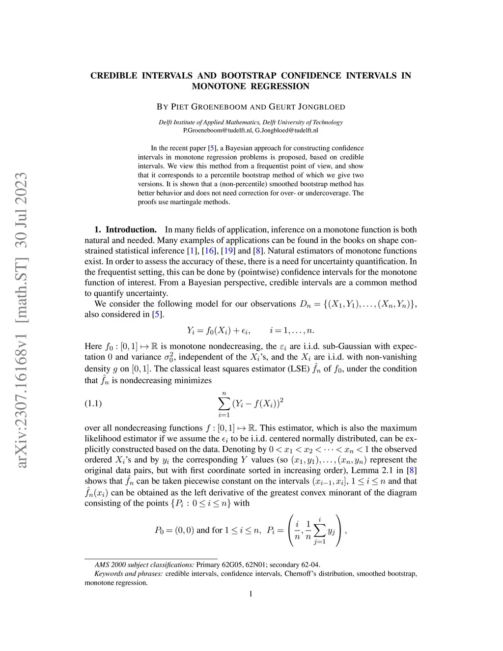 In the recent paper [5], a Bayesian approach for constructing confidence intervals in monotone regression problems is proposed, based on credible intervals. We view this method from a frequentist point of view, and show that it corresponds to a percentile bootstrap method of which we give two versions. It is shown that a (non-percentile) smoothed bootstrap method has better behavior and does not need correction for over- or undercoverage. The proofs use martingale methods.