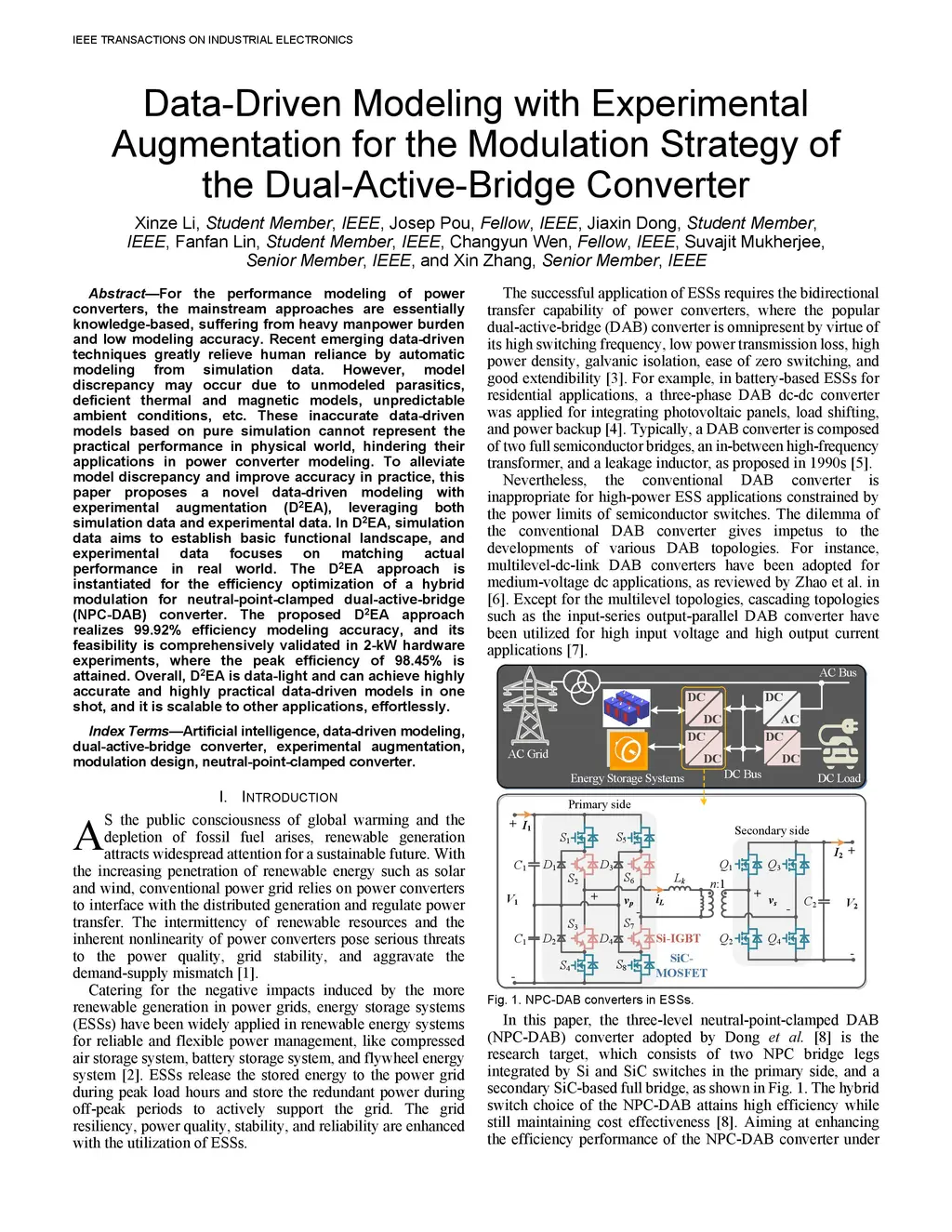 For the performance modeling of power converters, the mainstream approaches are essentially knowledge-based, suffering from heavy manpower burden and low modeling accuracy. Recent emerging data-driven techniques greatly relieve human reliance by automatic modeling from simulation data. However, model discrepancy may occur due to unmodeled parasitics, deficient thermal and magnetic models, unpredictable ambient conditions, etc. These inaccurate data-driven models based on pure simulation cannot represent the practical performance in physical world, hindering their applications in power converter modeling. To alleviate model discrepancy and improve accuracy in practice, this paper proposes a novel data-driven modeling with experimental augmentation (D2EA), leveraging both simulation data and experimental data. In D2EA, simulation data aims to establish basic functional landscape, and experimental data focuses on matching actual performance in real world. The D2EA approach is instantiated for the efficiency optimization of a hybrid modulation for neutral-point-clamped dual-active-bridge (NPC-DAB) converter. The proposed D2EA approach realizes 99.92% efficiency modeling accuracy, and its feasibility is comprehensively validated in 2-kW hardware experiments, where the peak efficiency of 98.45% is attained. Overall, D2EA is data-light and can achieve highly accurate and highly practical data-driven models in one shot, and it is scalable to other applications, effortlessly.