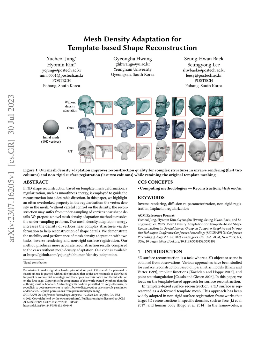 Mesh Density Adaptation for Template-based Shape Reconstruction