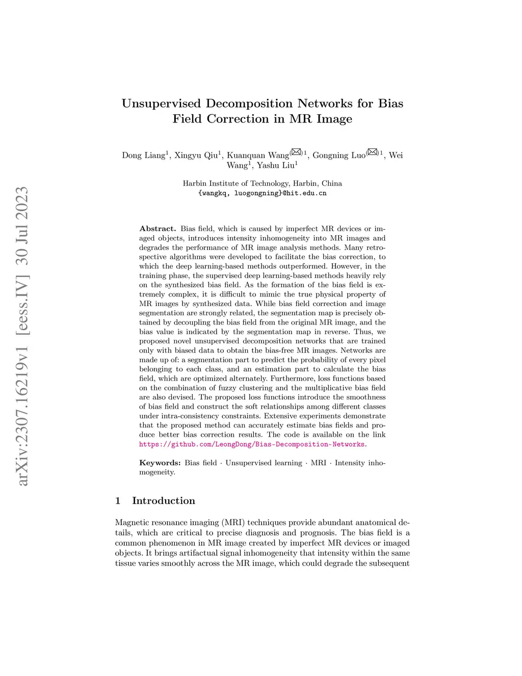 Unsupervised Decomposition Networks for Bias Field Correction in MR
