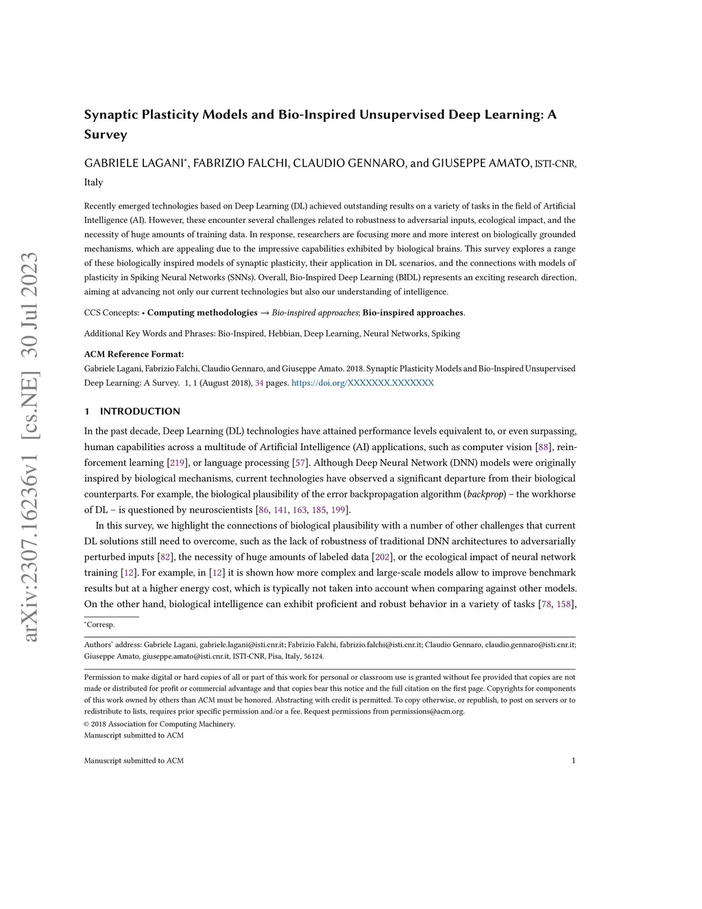 Synaptic Plasticity Models and Bio-Inspired Unsupervised Deep Learning: