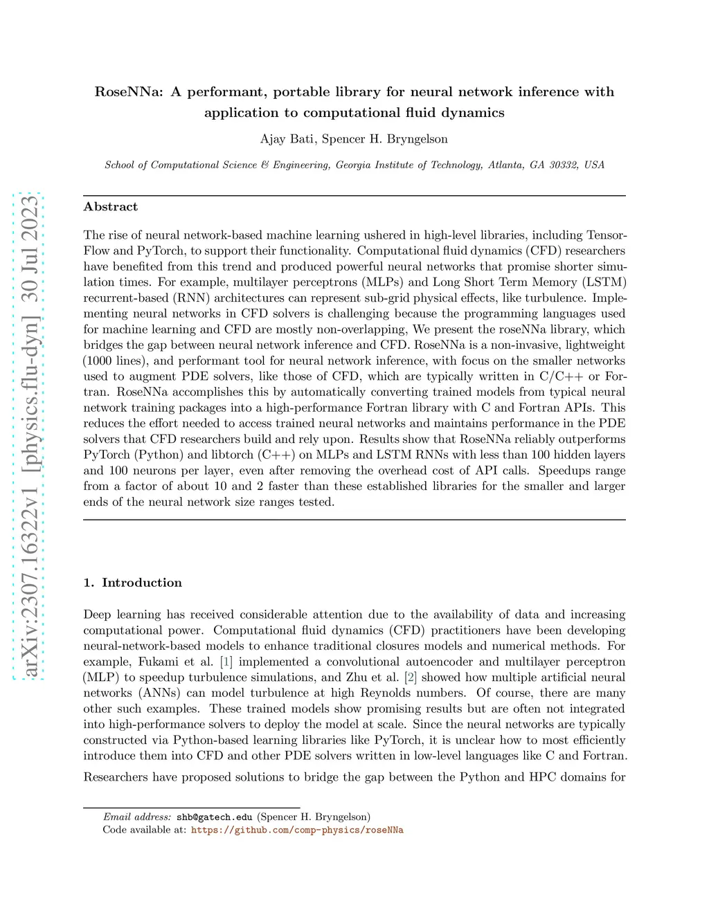 The rise of neural network-based machine learning ushered in high-level libraries, including TensorFlow and PyTorch, to support their functionality. Computational fluid dynamics (CFD) researchers have benefited from this trend and produced powerful neural networks that promise shorter simulation times. For example, multilayer perceptrons (MLPs) and Long Short Term Memory (LSTM) recurrent-based (RNN) architectures can represent sub-grid physical effects, like turbulence. Implementing neural networks in CFD solvers is challenging because the programming languages used for machine learning and CFD are mostly non-overlapping, We present the roseNNa library, which bridges the gap between neural network inference and CFD. RoseNNa is a non-invasive, lightweight (1000 lines), and performant tool for neural network inference, with focus on the smaller networks used to augment PDE solvers, like those of CFD, which are typically written in C/C++ or Fortran. RoseNNa accomplishes this by automatically converting trained models from typical neural network training packages into a high-performance Fortran library with C and Fortran APIs. This reduces the effort needed to access trained neural networks and maintains performance in the PDE solvers that CFD researchers build and rely upon. Results show that RoseNNa reliably outperforms PyTorch (Python) and libtorch (C++) on MLPs and LSTM RNNs with less than 100 hidden layers and 100 neurons per layer, even after removing the overhead cost of API calls. Speedups range from a factor of about 10 and 2 faster than these established libraries for the smaller and larger ends of the neural network size ranges tested.