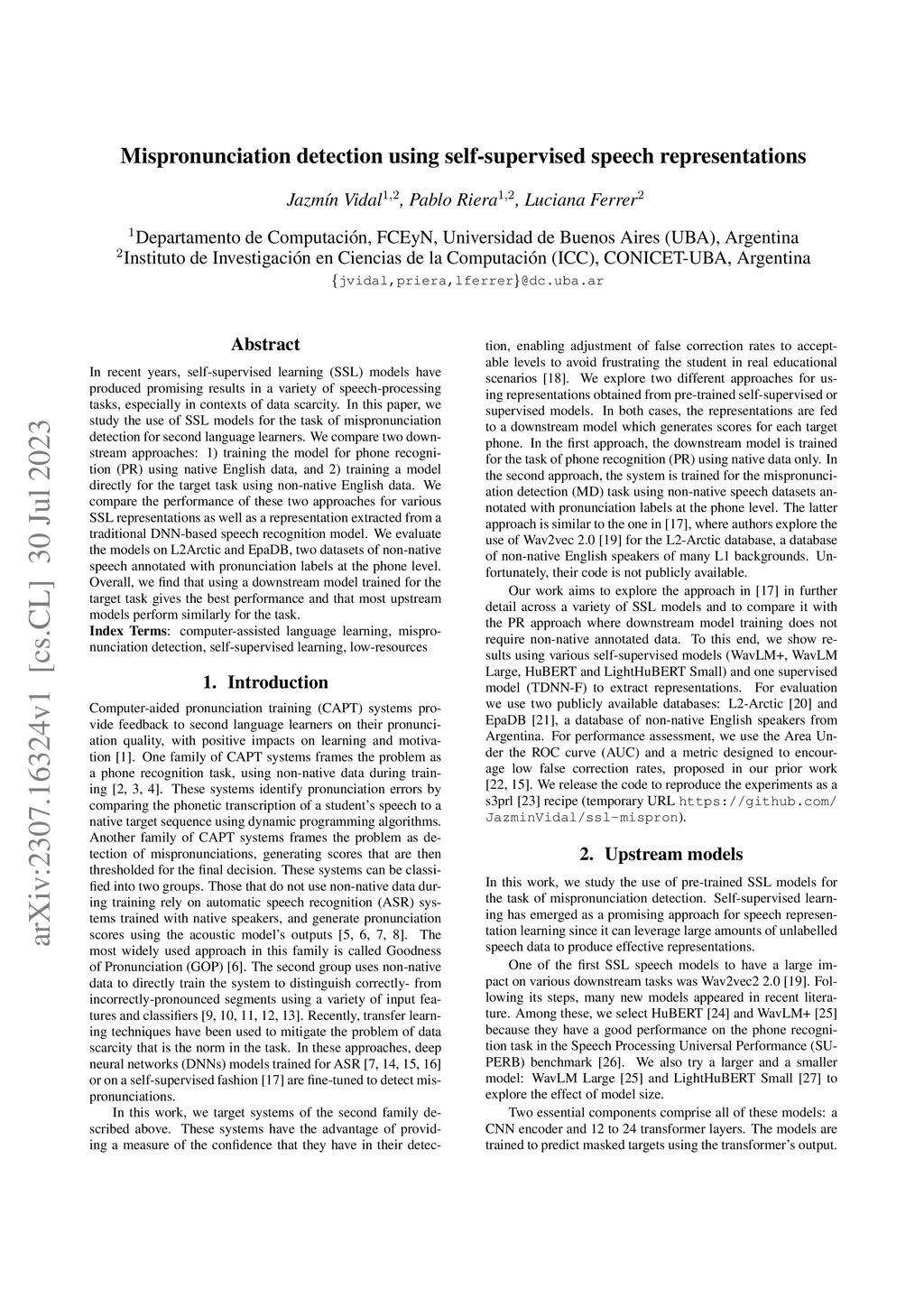 Mispronunciation detection using self-supervised speech representations
