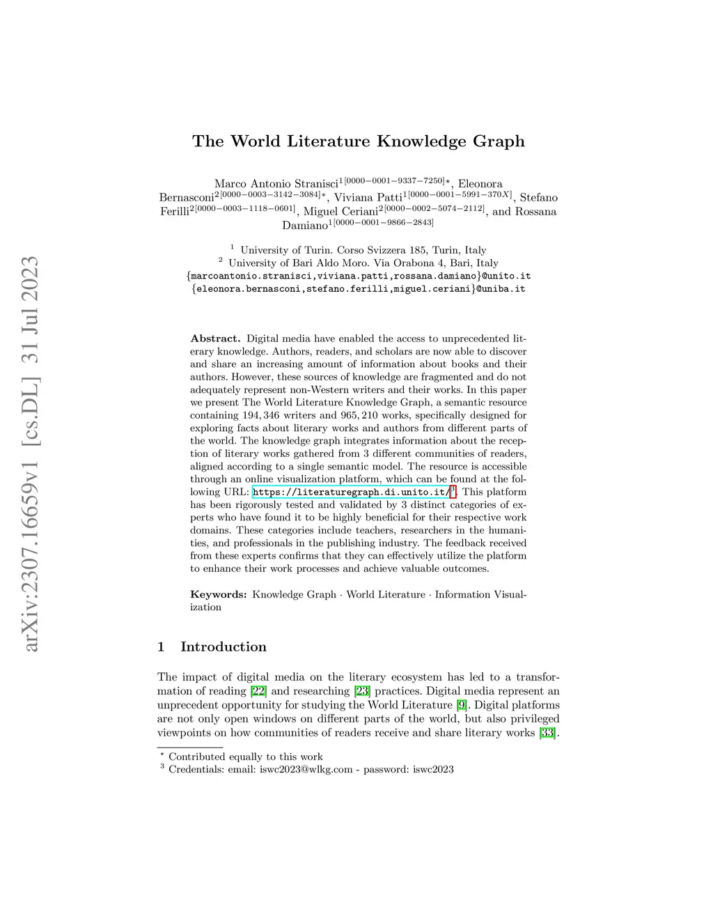Digital media have enabled the access to unprecedented literary knowledge. Authors, readers, and scholars are now able to discover and share an increasing amount of information about books and their authors. However, these sources of knowledge are fragmented and do not adequately represent non-Western writers and their works. In this paper we present The World Literature Knowledge Graph, a semantic resource containing 194,346 writers and 965,210 works, specifically designed for exploring facts about literary works and authors from different parts of the world. The knowledge graph integrates information about the reception of literary works gathered from 3 different communities of readers, aligned according to a single semantic model. The resource is accessible through an online visualization platform, which can be found at the following URL: https://literaturegraph.di.unito.it/. This platform has been rigorously tested and validated by distinct categories of experts who have found it to be highly beneficial for their respective work domains. These categories include teachers, researchers in the humanities, and professionals in the publishing industry. The feedback received from these experts confirms that they can effectively utilize the platform to enhance their work processes and achieve valuable outcomes.