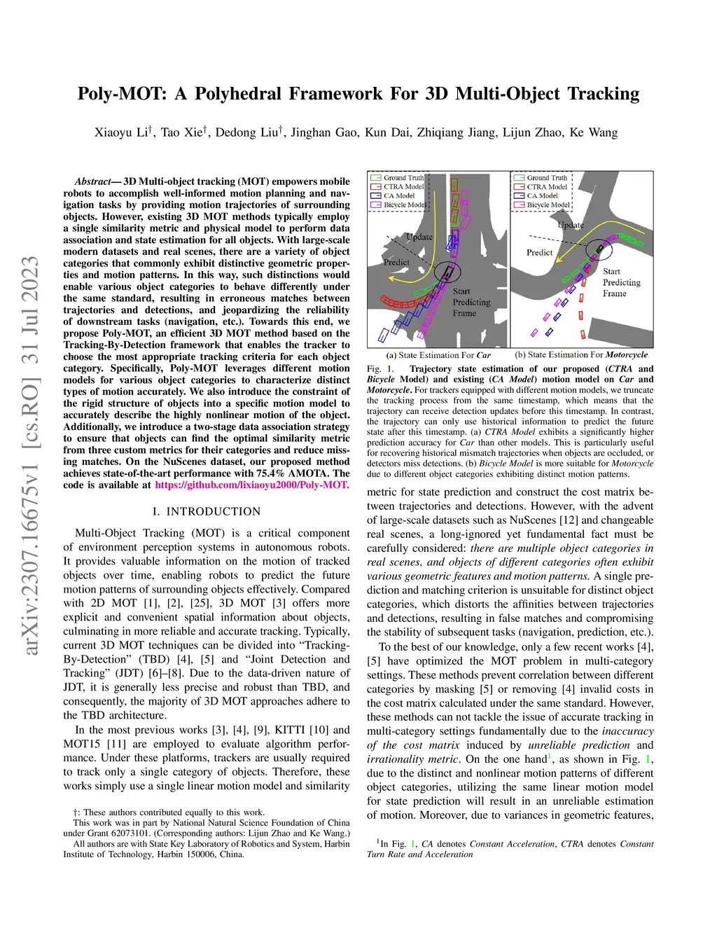 3D Multi-object tracking (MOT) empowers mobile robots to accomplish well-informed motion planning and navigation tasks by providing motion trajectories of surrounding objects. However, existing 3D MOT methods typically employ a single similarity metric and physical model to perform data association and state estimation for all objects. With large-scale modern datasets and real scenes, there are a variety of object categories that commonly exhibit distinctive geometric properties and motion patterns. In this way, such distinctions would enable various object categories to behave differently under the same standard, resulting in erroneous matches between trajectories and detections, and jeopardizing the reliability of downstream tasks (navigation, etc.). Towards this end, we propose Poly-MOT, an efficient 3D MOT method based on the Tracking-By-Detection framework that enables the tracker to choose the most appropriate tracking criteria for each object category. Specifically, Poly-MOT leverages different motion models for various object categories to characterize distinct types of motion accurately. We also introduce the constraint of the rigid structure of objects into a specific motion model to accurately describe the highly nonlinear motion of the object. Additionally, we introduce a two-stage data association strategy to ensure that objects can find the optimal similarity metric from three custom metrics for their categories and reduce missing matches. On the NuScenes dataset, our proposed method achieves state-of-the-art performance with 75.4\% AMOTA. The code is available at https://github.com/lixiaoyu2000/Poly-MOT