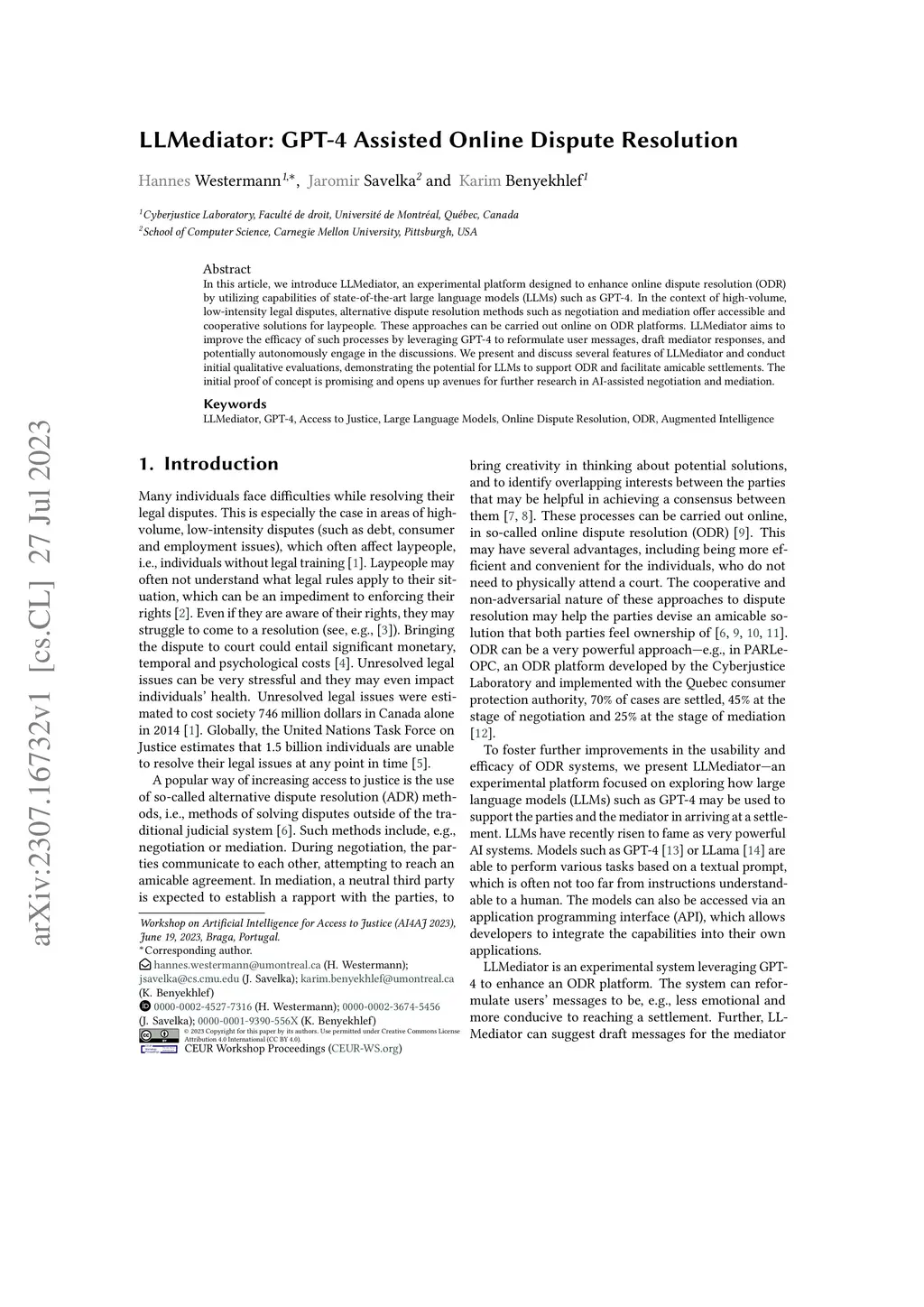 LLMediator: GPT-4 Assisted Online Dispute Resolution