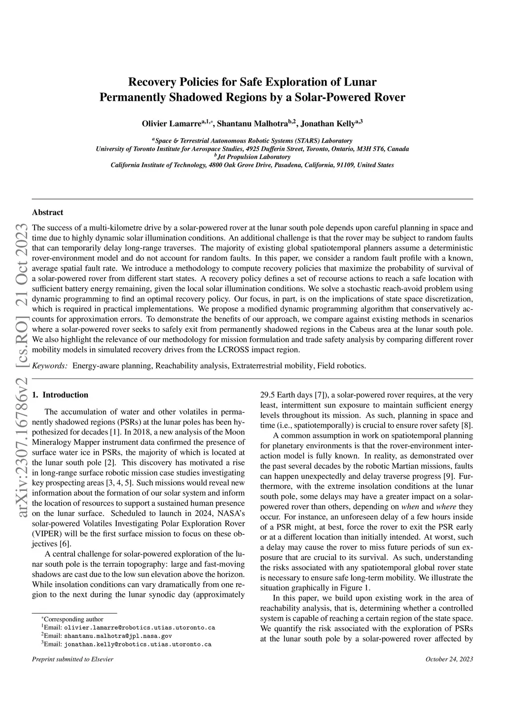 Recovery Policies for Safe Exploration of Lunar Permanently Shadowed