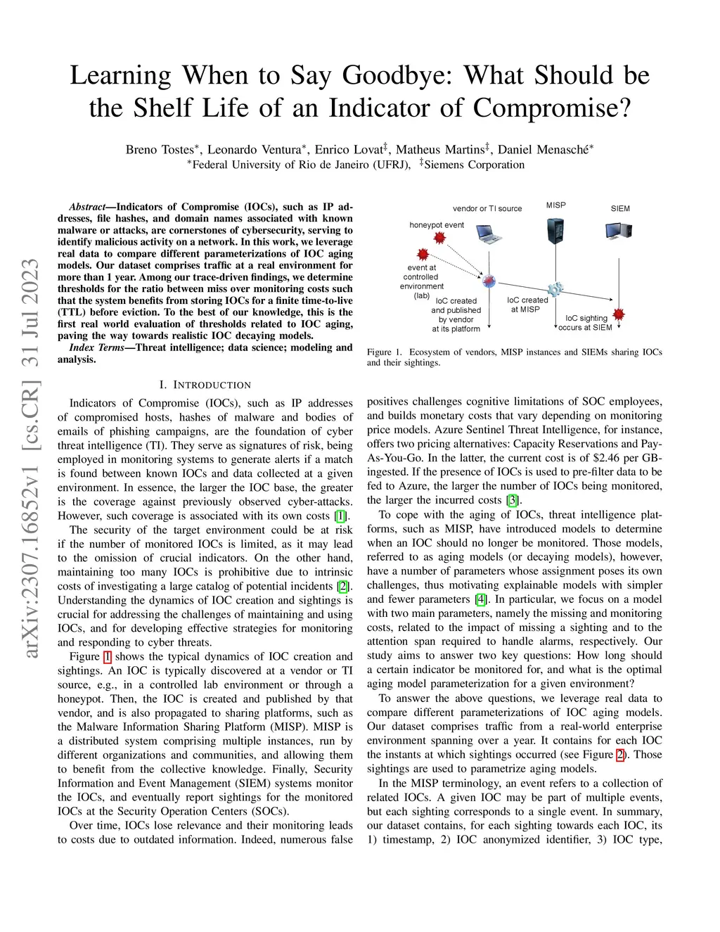 Indicators of Compromise (IOCs), such as IP addresses, file hashes, and domain names associated with known malware or attacks, are cornerstones of cybersecurity, serving to identify malicious activity on a network. In this work, we leverage real data to compare different parameterizations of IOC aging models. Our dataset comprises traffic at a real environment for more than 1 year. Among our trace-driven findings, we determine thresholds for the ratio between miss over monitoring costs such that the system benefits from storing IOCs for a finite time-to-live (TTL) before eviction. To the best of our knowledge, this is the first real world evaluation of thresholds related to IOC aging, paving the way towards realistic IOC decaying models.