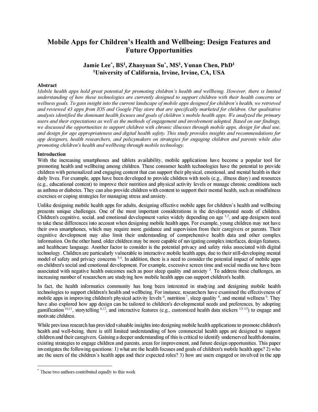 Mobile Apps for Children's Health and Wellbeing: Design Features and