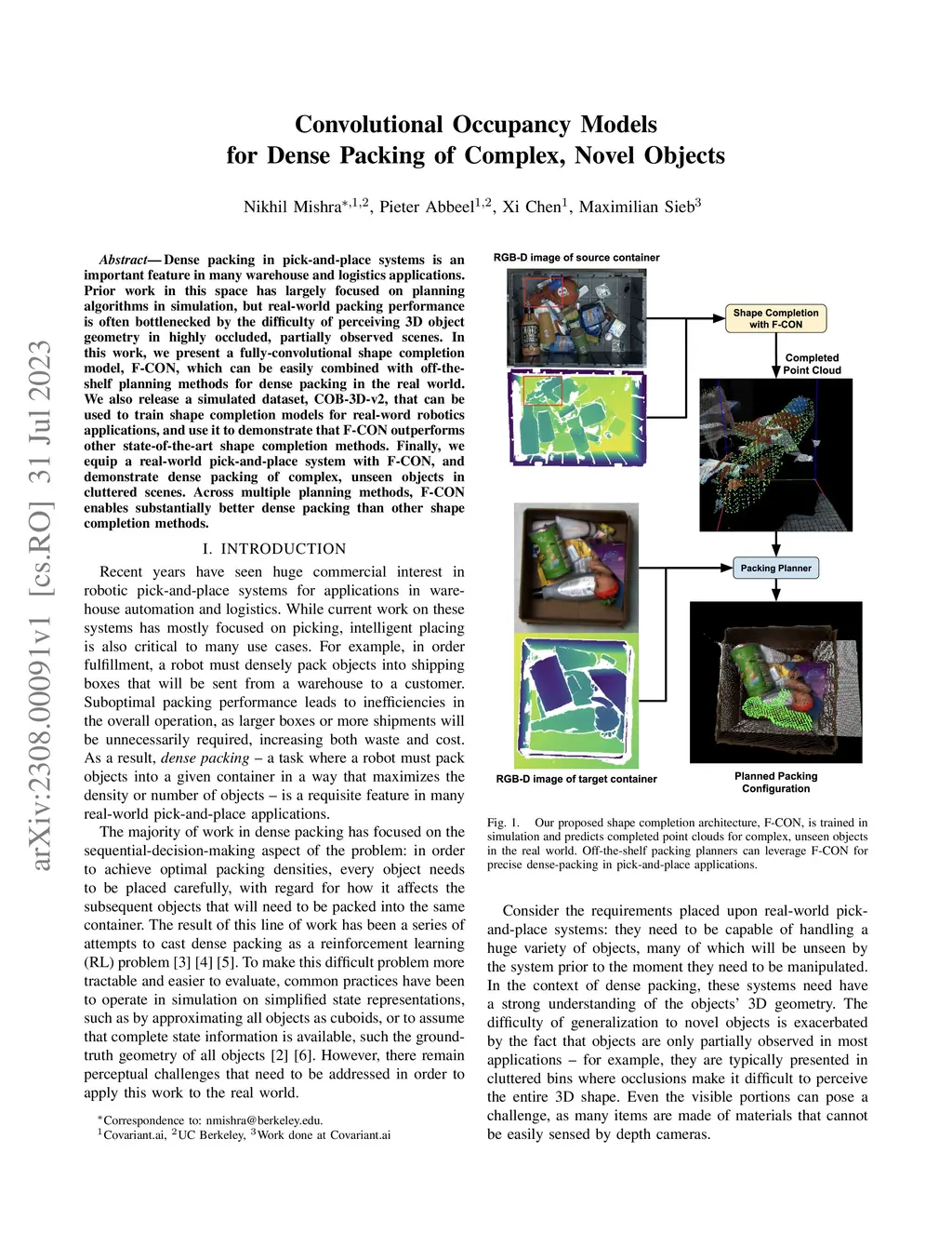 Dense packing in pick-and-place systems is an important feature in many warehouse and logistics applications. Prior work in this space has largely focused on planning algorithms in simulation, but real-world packing performance is often bottlenecked by the difficulty of perceiving 3D object geometry in highly occluded, partially observed scenes. In this work, we present a fully-convolutional shape completion model, F-CON, which can be easily combined with off-the-shelf planning methods for dense packing in the real world. We also release a simulated dataset, COB-3D-v2, that can be used to train shape completion models for real-word robotics applications, and use it to demonstrate that F-CON outperforms other state-of-the-art shape completion methods. Finally, we equip a real-world pick-and-place system with F-CON, and demonstrate dense packing of complex, unseen objects in cluttered scenes. Across multiple planning methods, F-CON enables substantially better dense packing than other shape completion methods.
