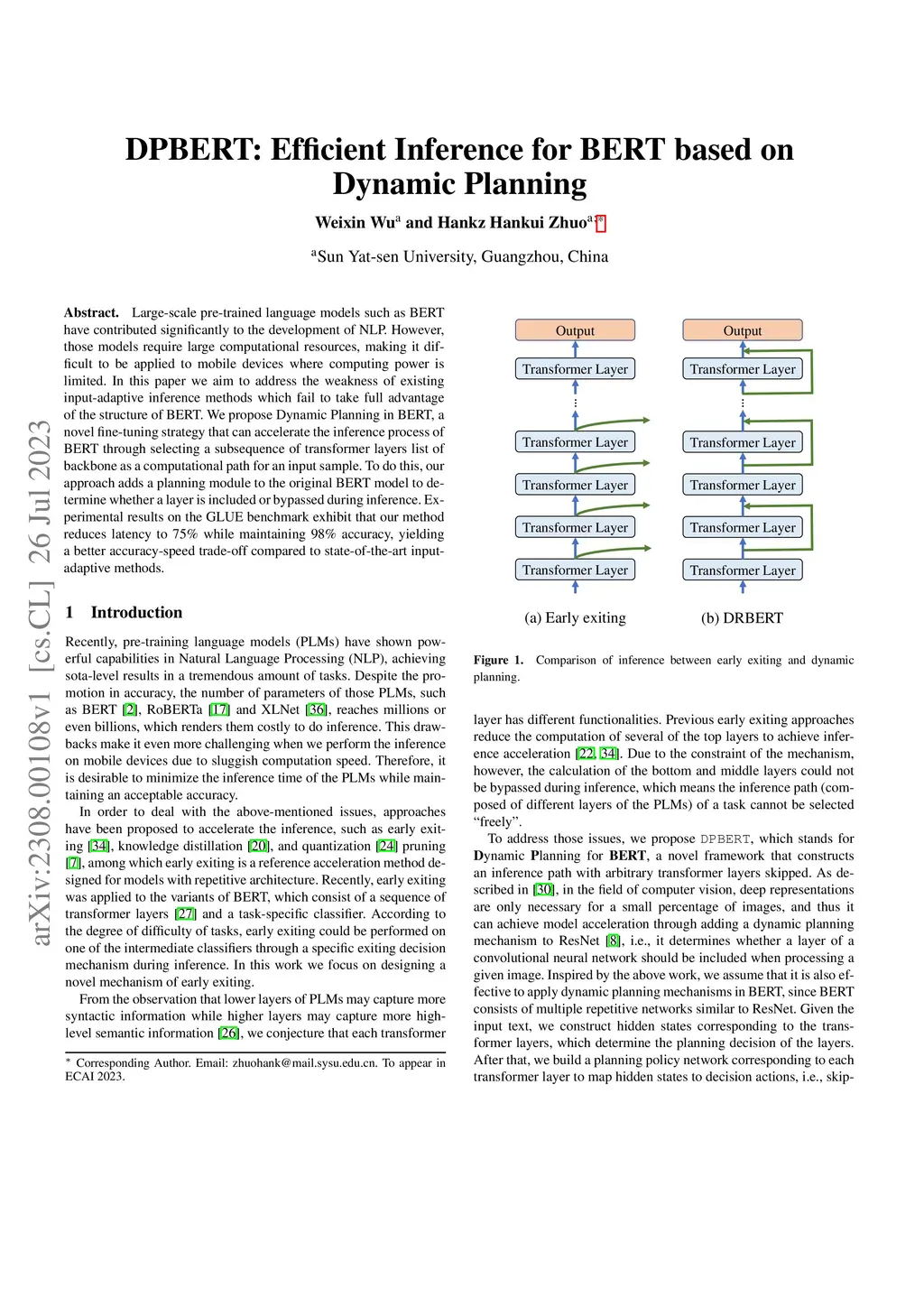 DPBERT: Efficient Inference for BERT based on Dynamic Planning