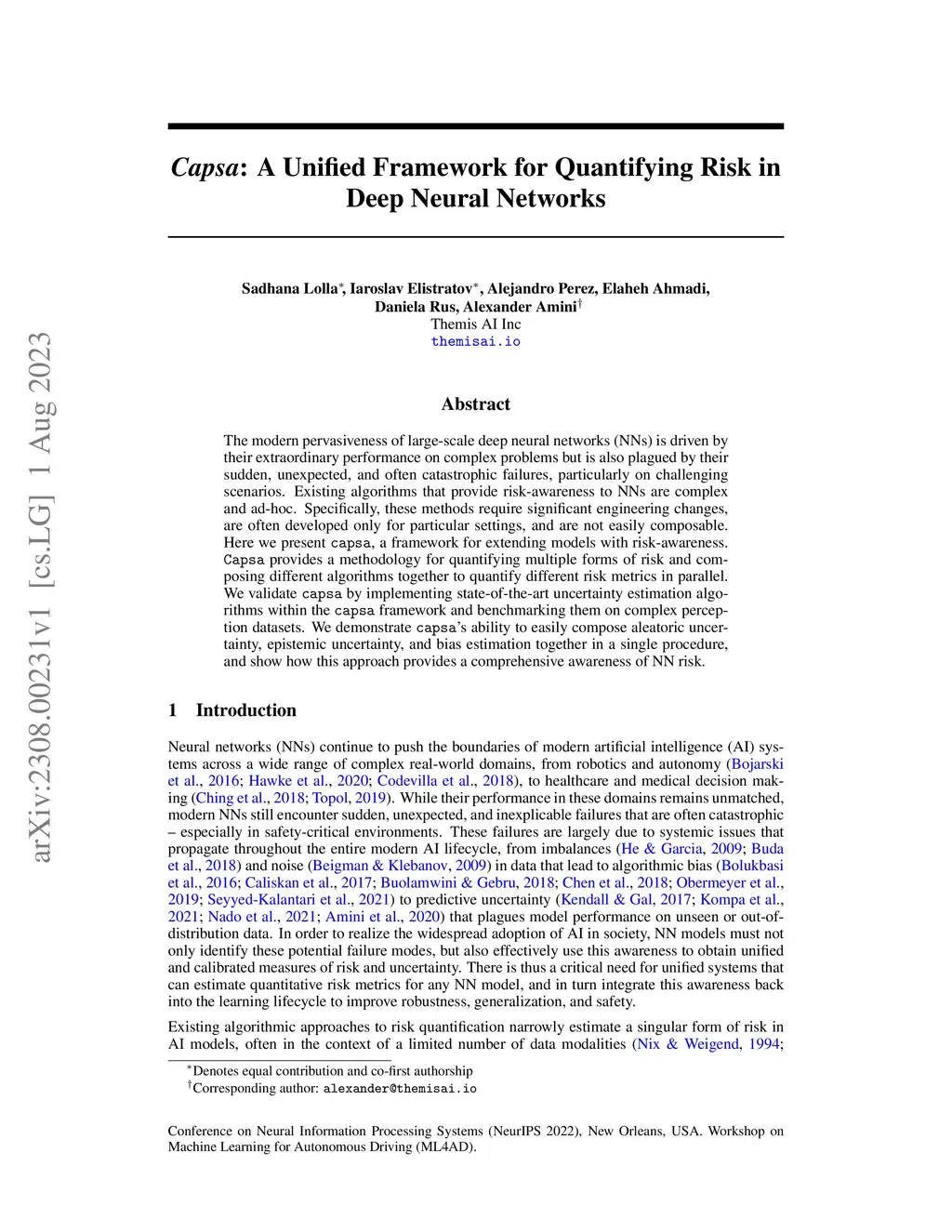 The modern pervasiveness of large-scale deep neural networks (NNs) is driven by their extraordinary performance on complex problems but is also plagued by their sudden, unexpected, and often catastrophic failures, particularly on challenging scenarios. Existing algorithms that provide risk-awareness to NNs are complex and ad-hoc. Specifically, these methods require significant engineering changes, are often developed only for particular settings, and are not easily composable. Here we present capsa, a framework for extending models with risk-awareness. Capsa provides a methodology for quantifying multiple forms of risk and composing different algorithms together to quantify different risk metrics in parallel. We validate capsa by implementing state-of-the-art uncertainty estimation algorithms within the capsa framework and benchmarking them on complex perception datasets. We demonstrate capsa's ability to easily compose aleatoric uncertainty, epistemic uncertainty, and bias estimation together in a single procedure, and show how this approach provides a comprehensive awareness of NN risk.
