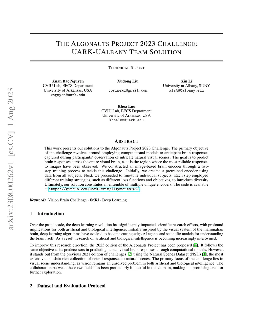 The Algonauts Project 2023 Challenge: UARK-UAlbany Team Solution