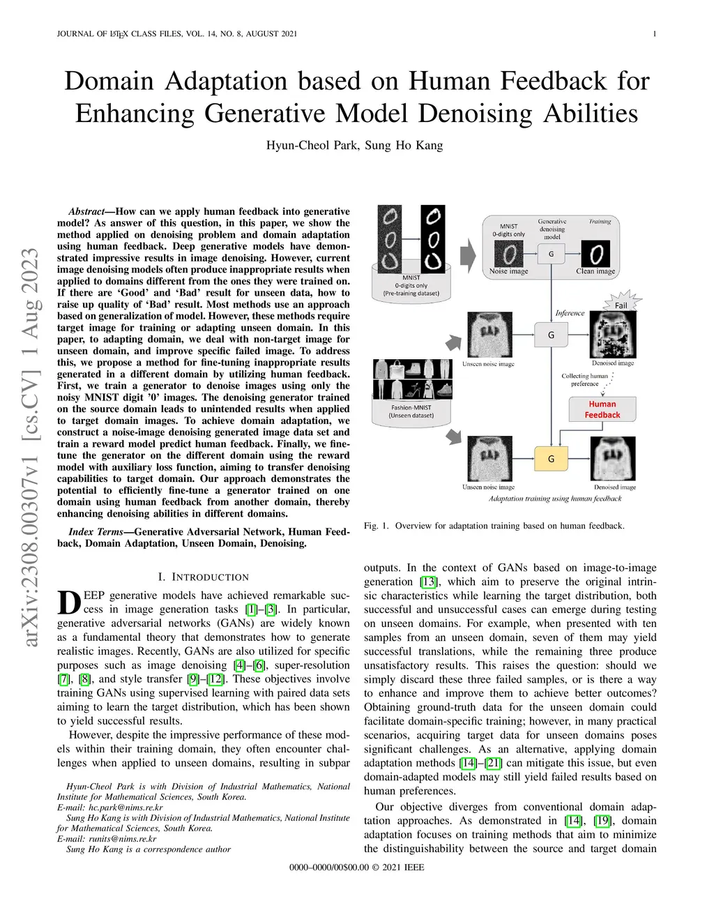 How can we apply human feedback into generative model? As answer of this question, in this paper, we show the method applied on denoising problem and domain adaptation using human feedback. Deep generative models have demonstrated impressive results in image denoising. However, current image denoising models often produce inappropriate results when applied to domains different from the ones they were trained on. If there are `Good' and `Bad' result for unseen data, how to raise up quality of `Bad' result. Most methods use an approach based on generalization of model. However, these methods require target image for training or adapting unseen domain. In this paper, to adapting domain, we deal with non-target image for unseen domain, and improve specific failed image. To address this, we propose a method for fine-tuning inappropriate results generated in a different domain by utilizing human feedback. First, we train a generator to denoise images using only the noisy MNIST digit '0' images. The denoising generator trained on the source domain leads to unintended results when applied to target domain images. To achieve domain adaptation, we construct a noise-image denoising generated image data set and train a reward model predict human feedback. Finally, we fine-tune the generator on the different domain using the reward model with auxiliary loss function, aiming to transfer denoising capabilities to target domain. Our approach demonstrates the potential to efficiently fine-tune a generator trained on one domain using human feedback from another domain, thereby enhancing denoising abilities in different domains.
