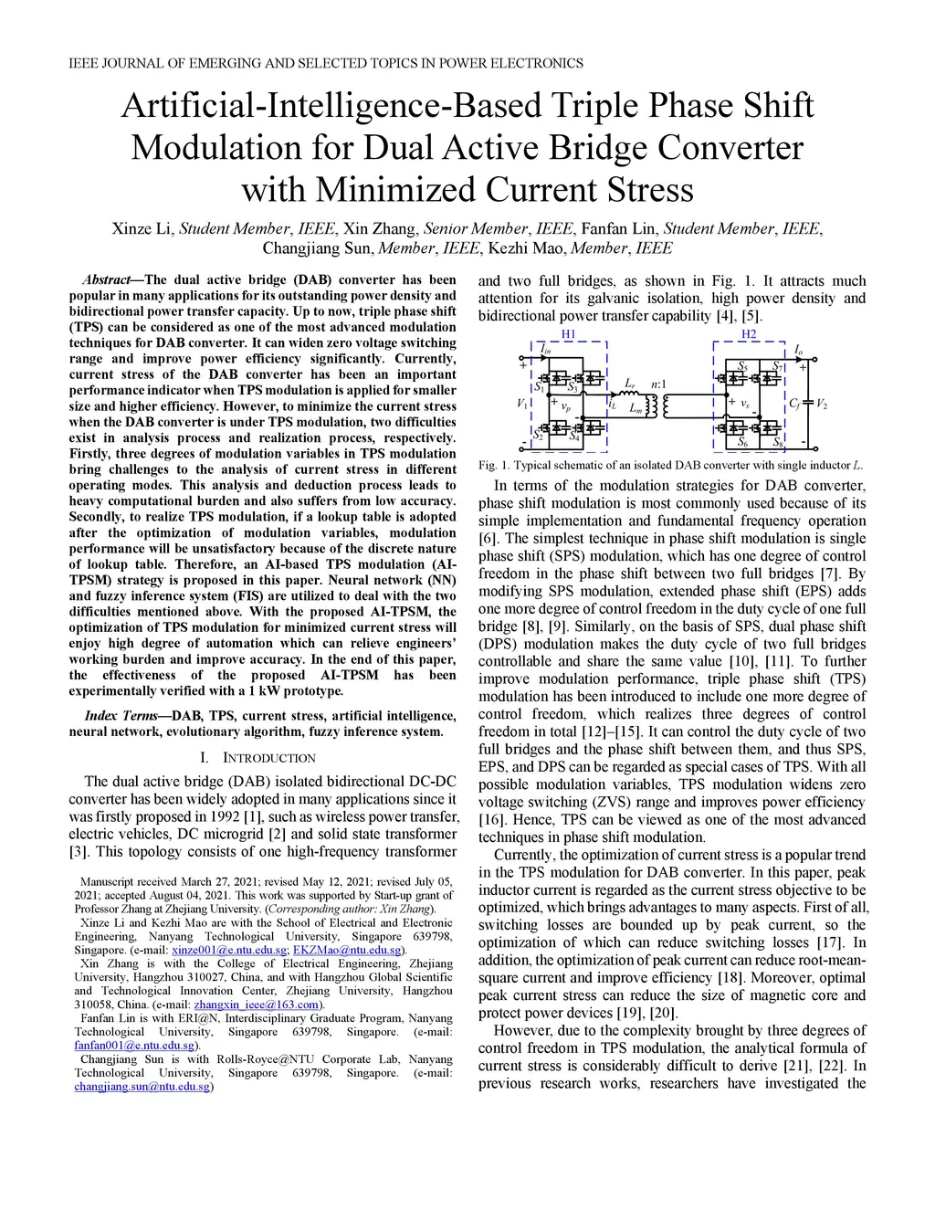 Artificial-Intelligence-Based Triple Phase Shift Modulation for Dual