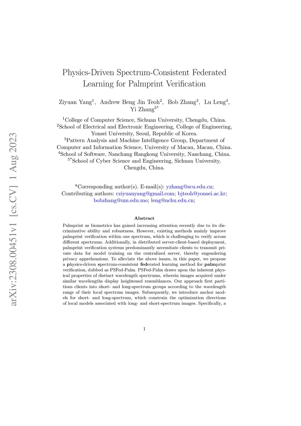 Physics-Driven Spectrum-Consistent Federated Learning for Palmprint