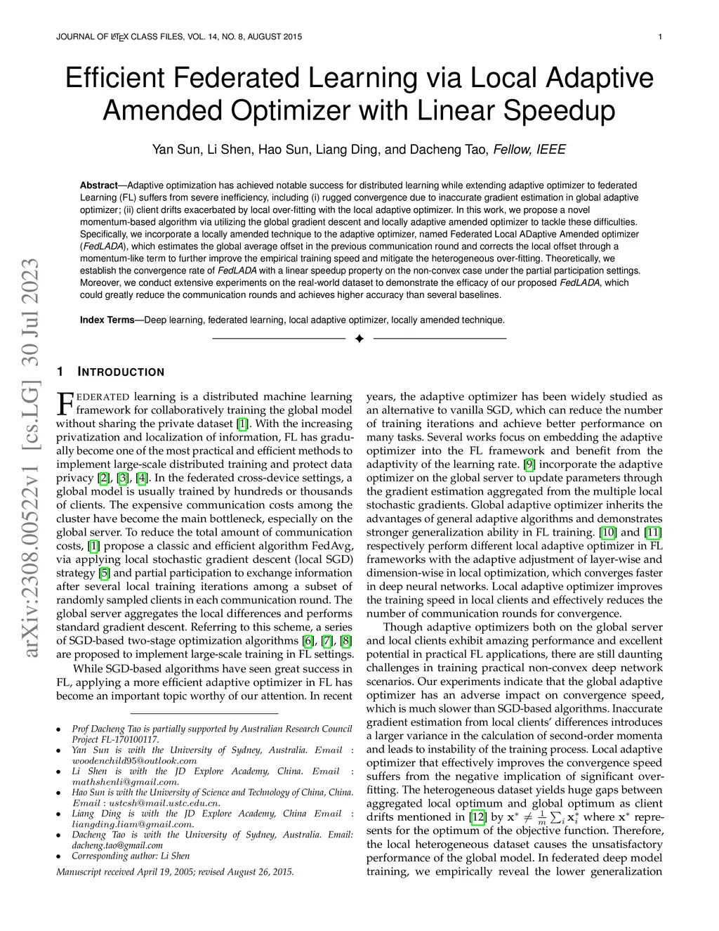 Efficient Federated Learning via Local Adaptive Amended Optimizer with