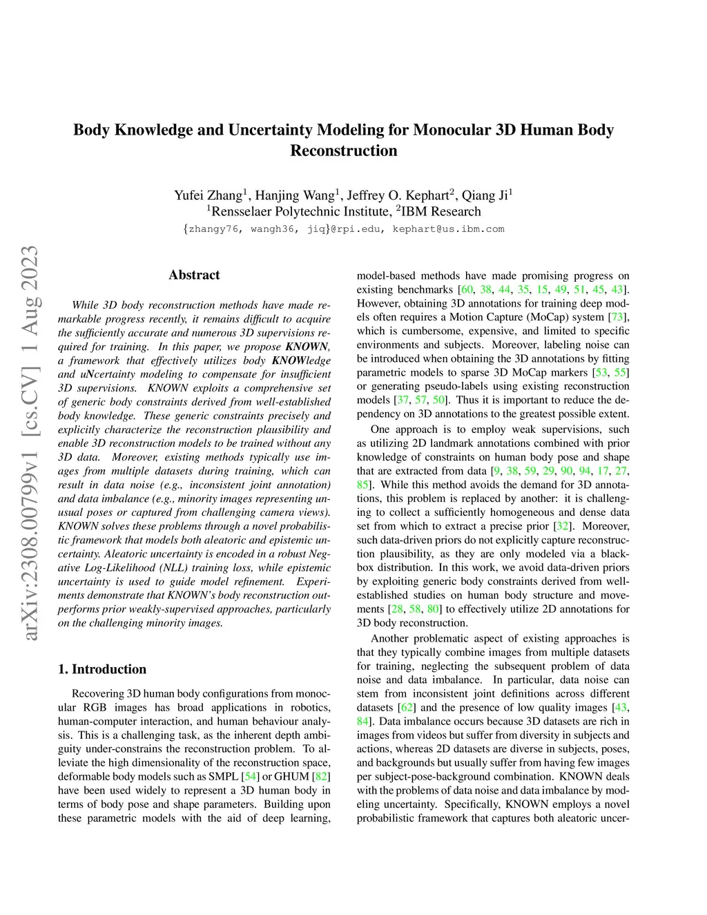 Body Knowledge and Uncertainty Modeling for Monocular 3D Human Body
