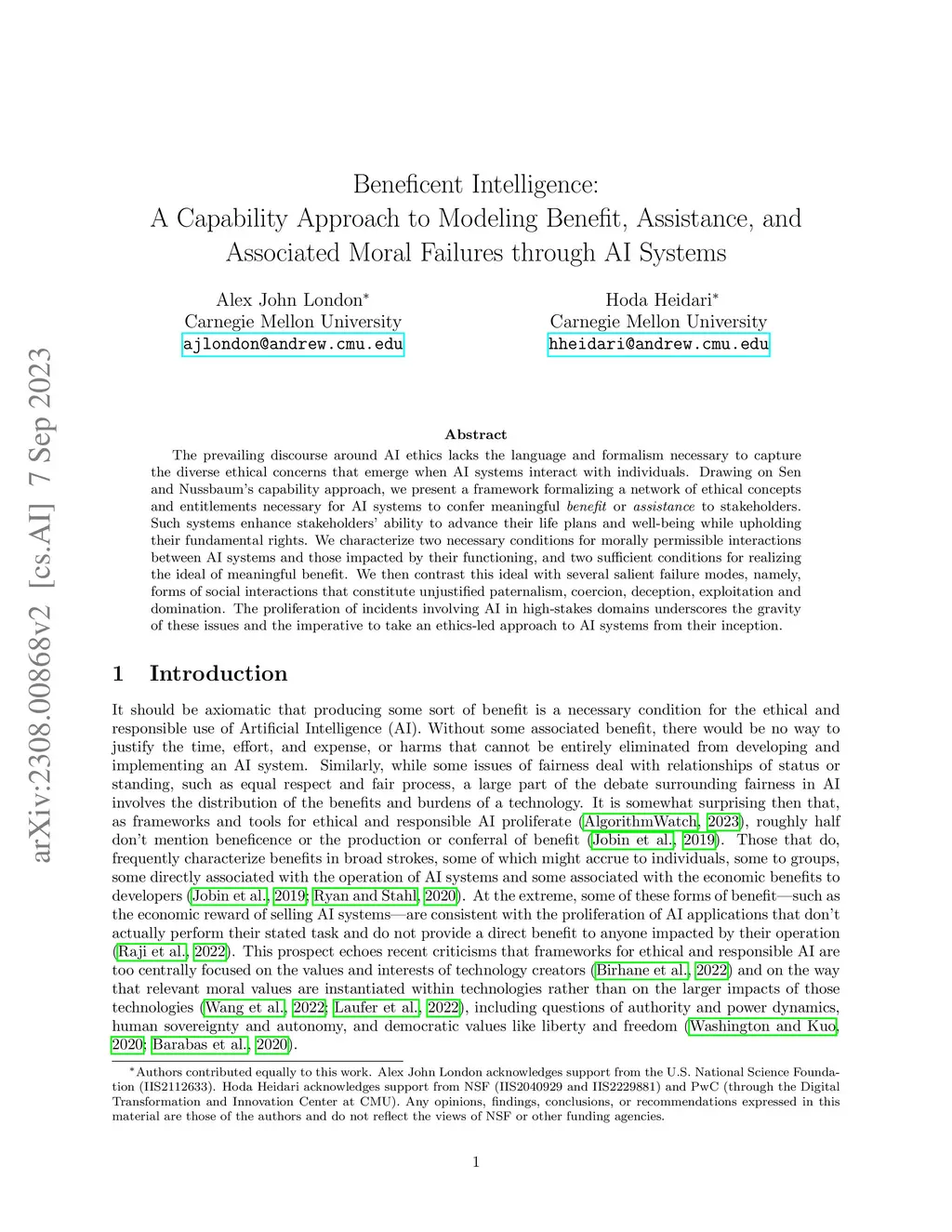 Beneficent Intelligence: A Capability Approach to Modeling Benefit,