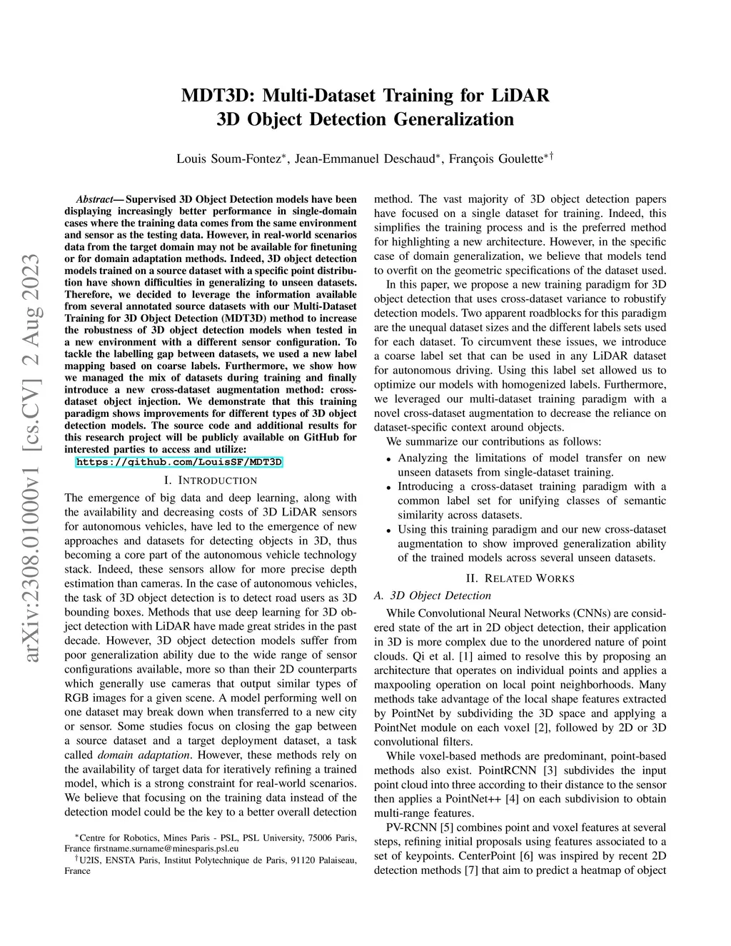 MDT3D: Multi-Dataset Training for LiDAR 3D Object Detection