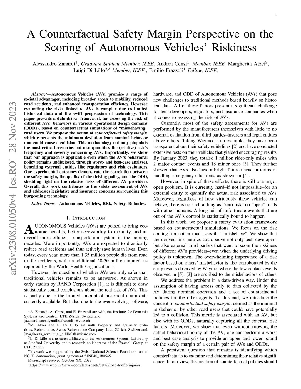 A Counterfactual Safety Margin Perspective on the Scoring of Autonomous