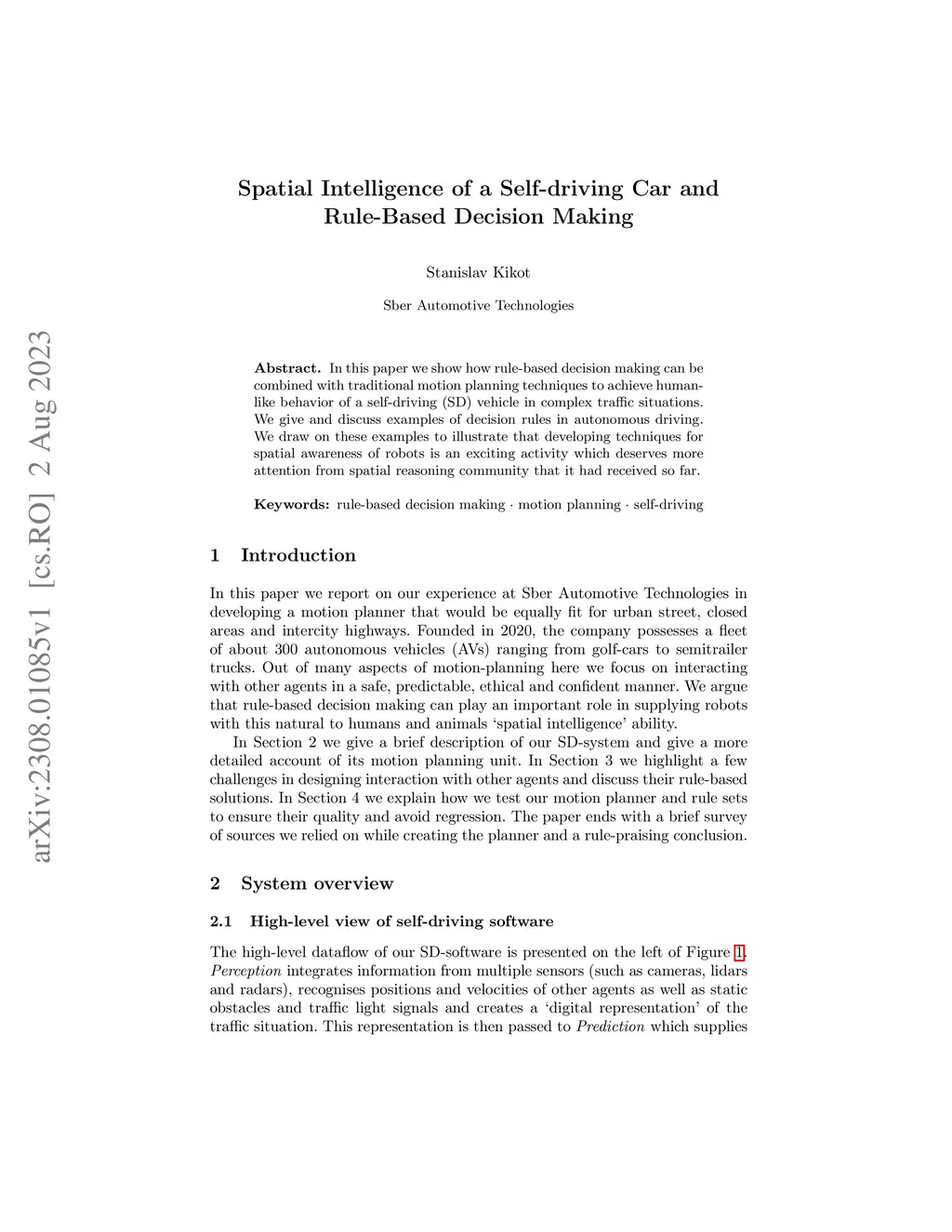 Spatial Intelligence of a Self-driving Car and Rule-Based Decision
