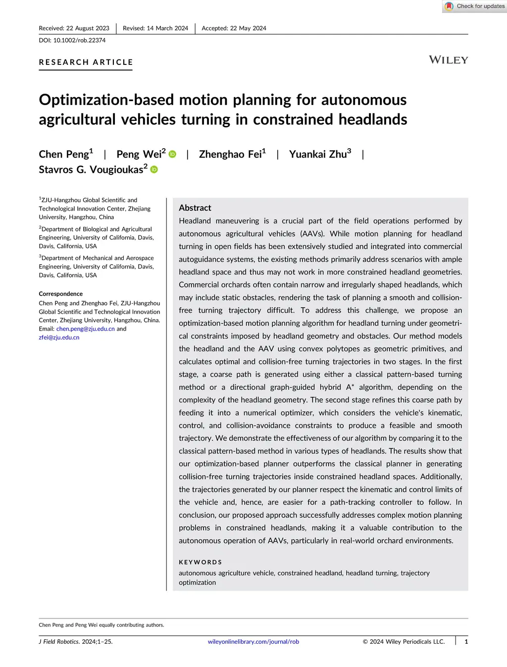 Optimization-Based Motion Planning for Autonomous Agricultural Vehicles
