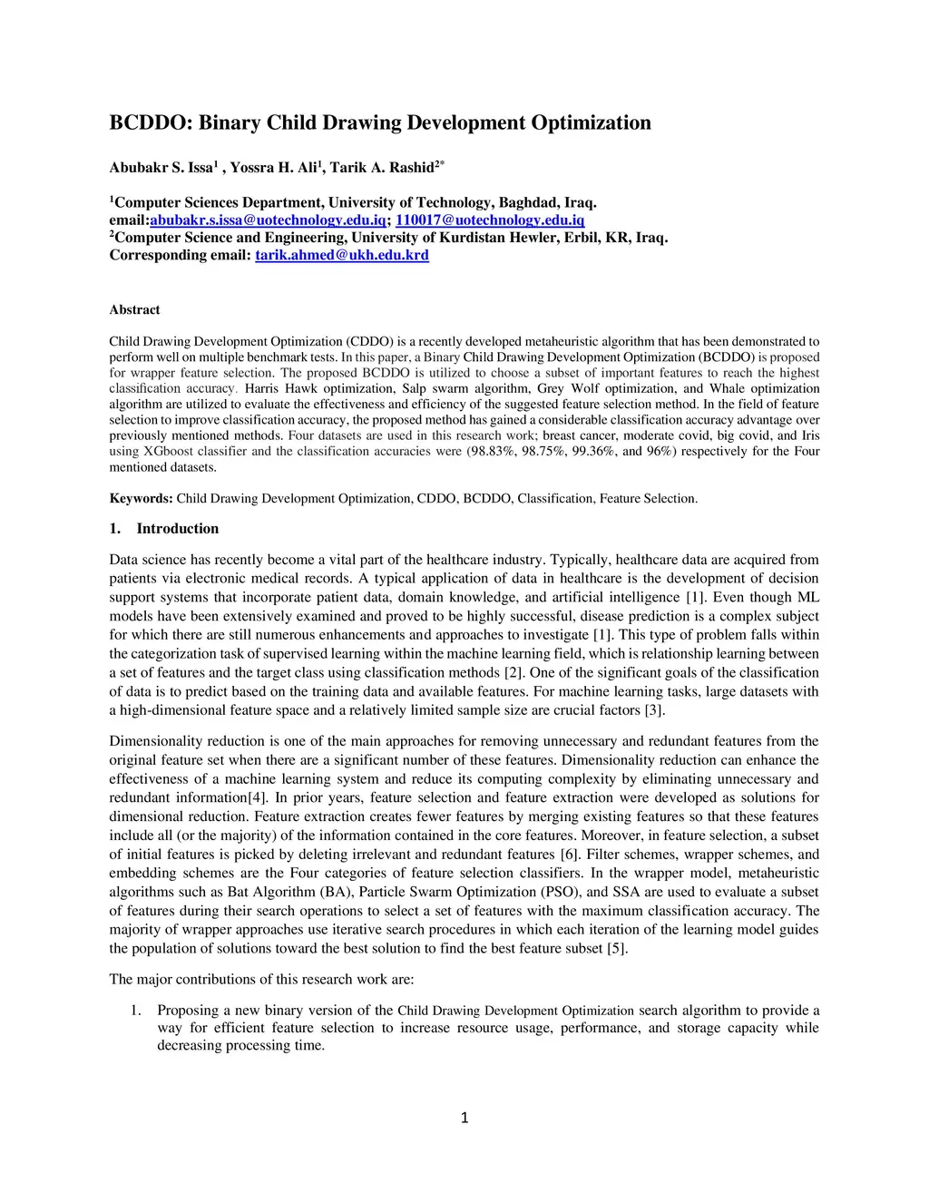 BCDDO: Binary Child Drawing Development Optimization