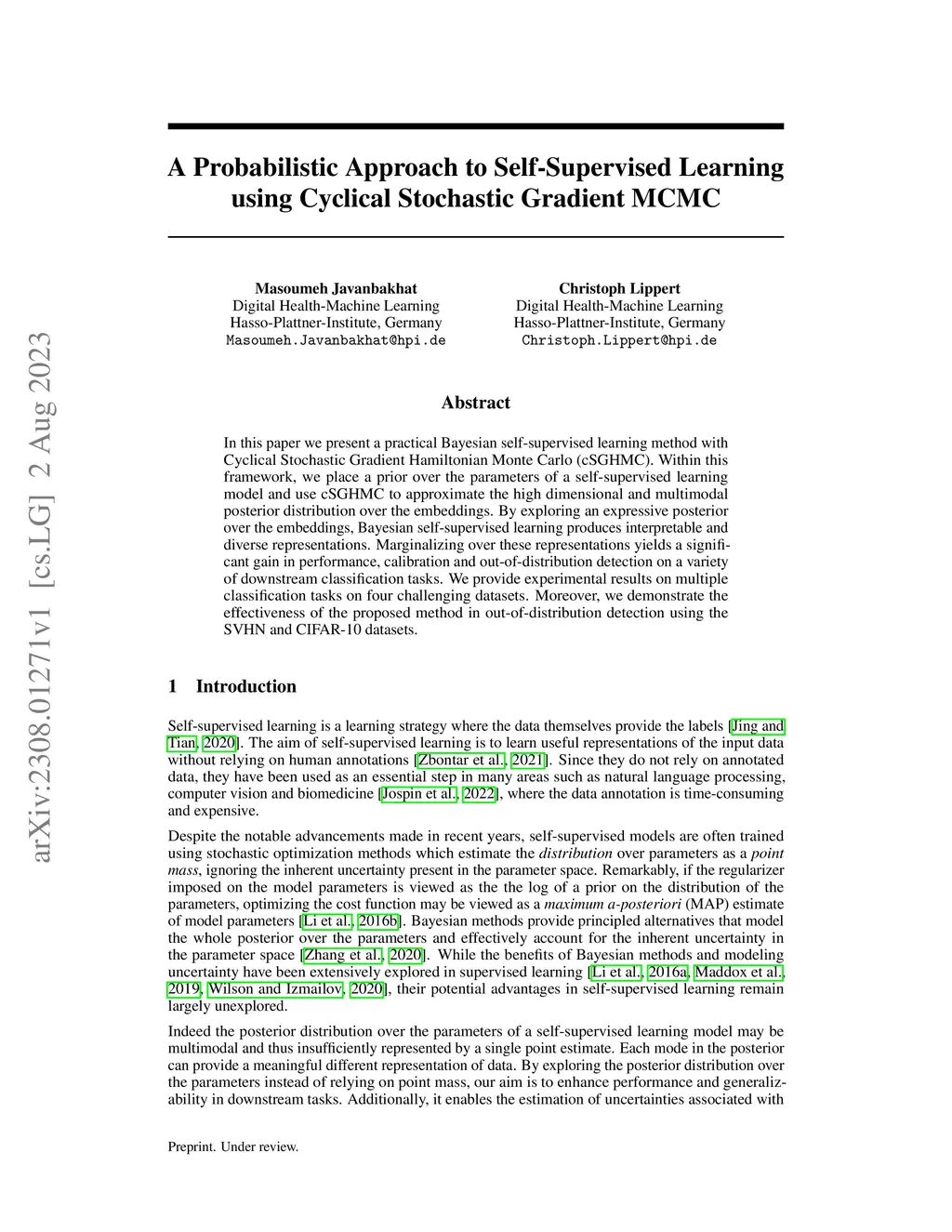 A Probabilistic Approach to Self-Supervised Learning using Cyclical