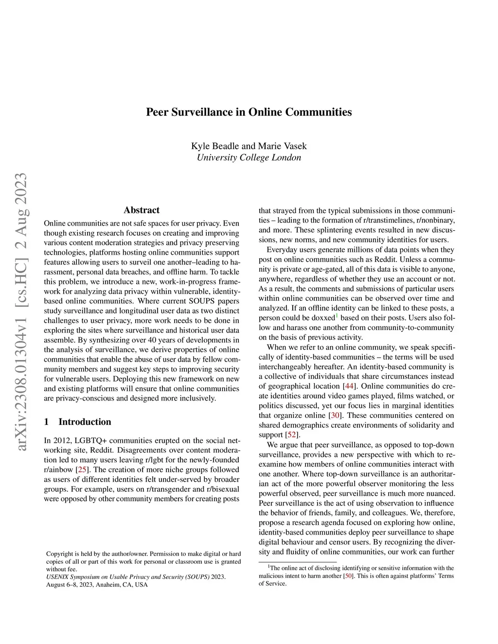Online communities are not safe spaces for user privacy. Even though existing research focuses on creating and improving various content moderation strategies and privacy preserving technologies, platforms hosting online communities support features allowing users to surveil one another--leading to harassment, personal data breaches, and offline harm. To tackle this problem, we introduce a new, work-in-progress framework for analyzing data privacy within vulnerable, identity-based online communities. Where current SOUPS papers study surveillance and longitudinal user data as two distinct challenges to user privacy, more work needs to be done in exploring the sites where surveillance and historical user data assemble. By synthesizing over 40 years of developments in the analysis of surveillance, we derive properties of online communities that enable the abuse of user data by fellow community members and suggest key steps to improving security for vulnerable users. Deploying this new framework on new and existing platforms will ensure that online communities are privacy-conscious and designed more inclusively.