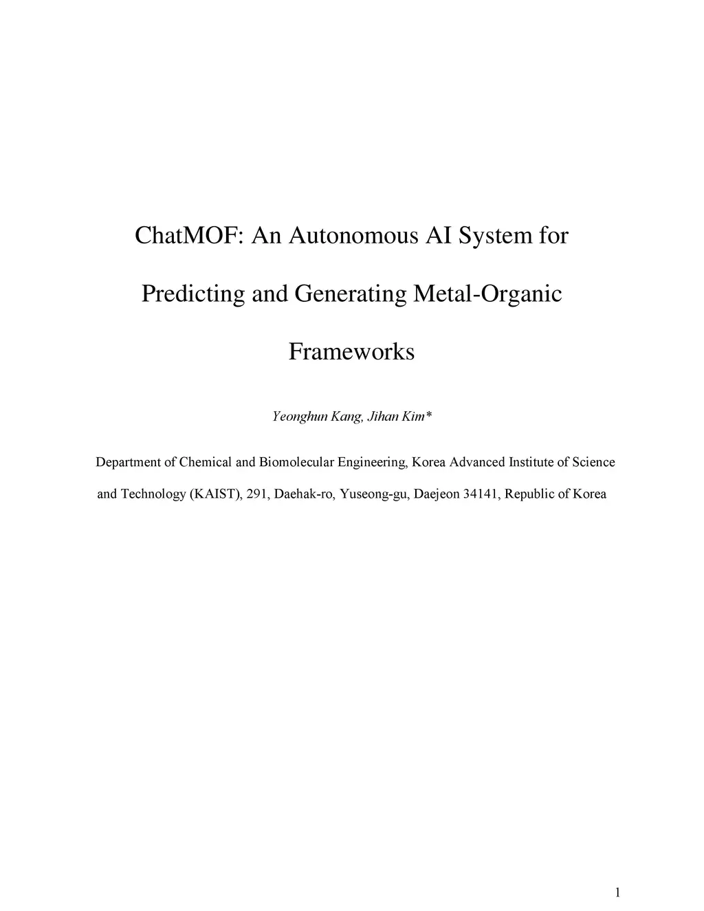 ChatMOF: An Autonomous AI System for Predicting and Generating