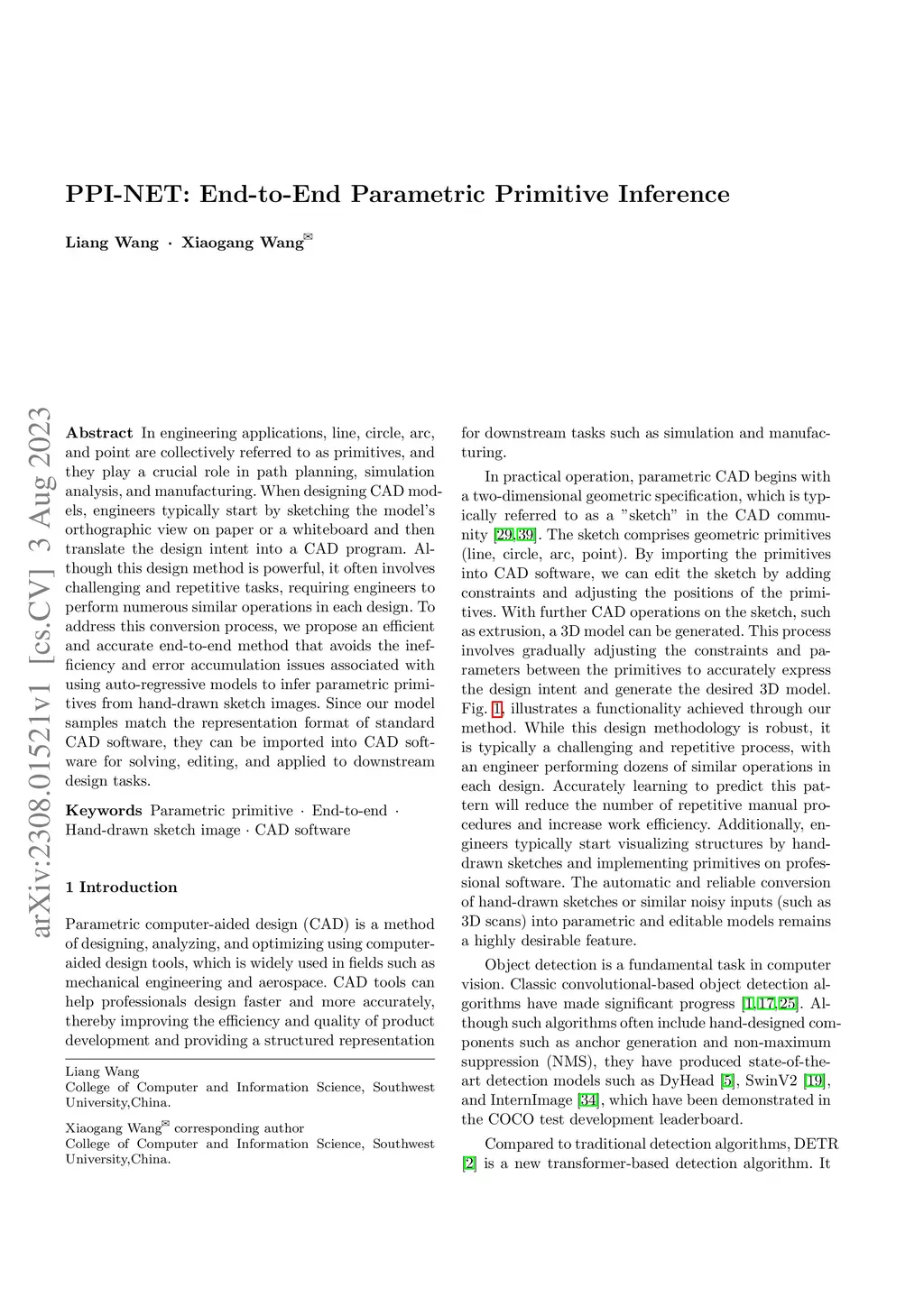 In engineering applications, line, circle, arc, and point are collectively referred to as primitives, and they play a crucial role in path planning, simulation analysis, and manufacturing. When designing CAD models, engineers typically start by sketching the model's orthographic view on paper or a whiteboard and then translate the design intent into a CAD program. Although this design method is powerful, it often involves challenging and repetitive tasks, requiring engineers to perform numerous similar operations in each design. To address this conversion process, we propose an efficient and accurate end-to-end method that avoids the inefficiency and error accumulation issues associated with using auto-regressive models to infer parametric primitives from hand-drawn sketch images. Since our model samples match the representation format of standard CAD software, they can be imported into CAD software for solving, editing, and applied to downstream design tasks.