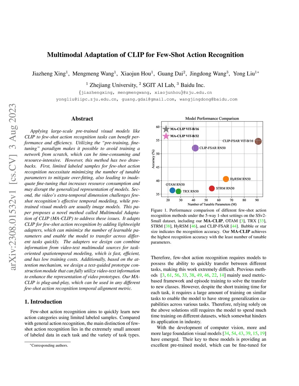 Multimodal Adaptation of CLIP for Few-Shot Action Recognition