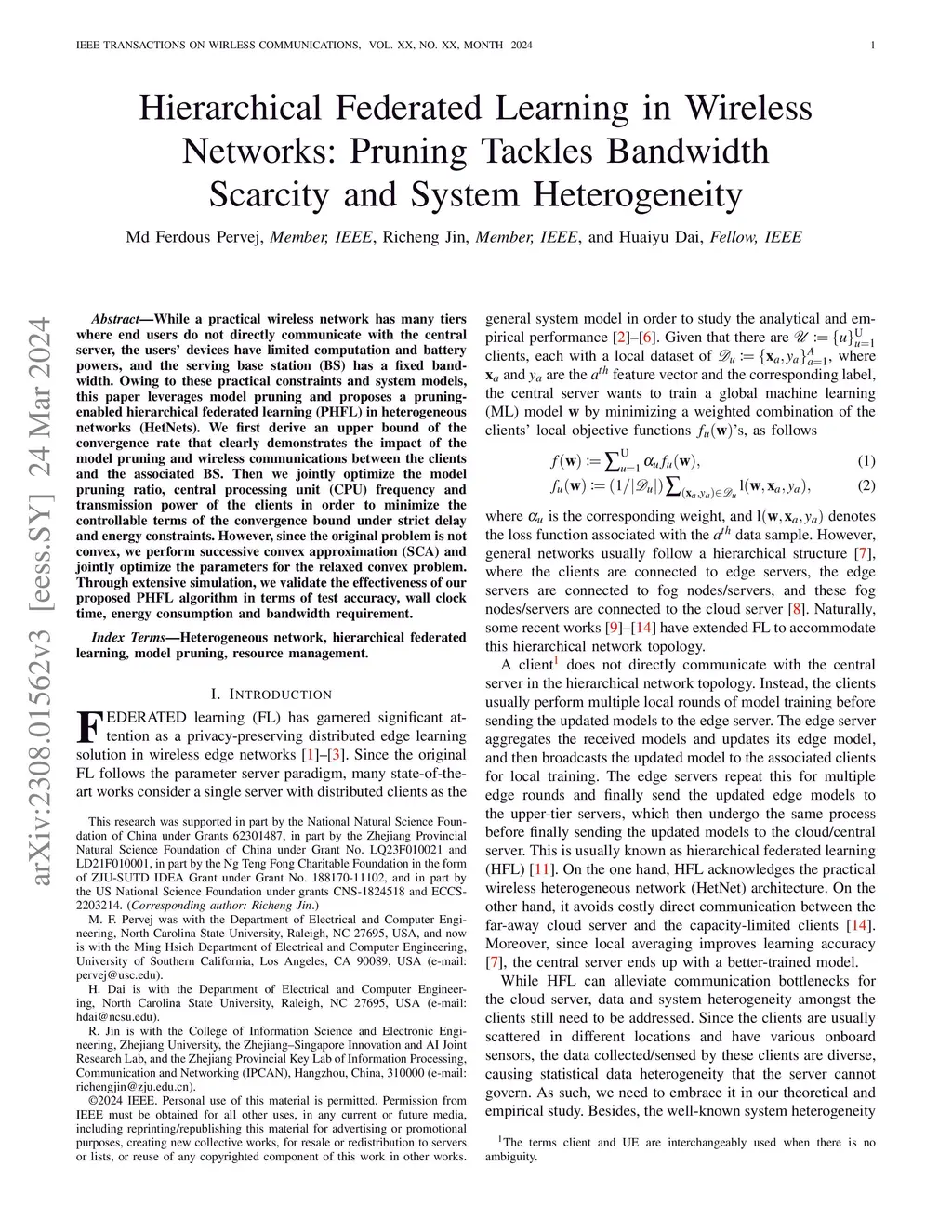 Hierarchical Federated Learning in Wireless Networks: Pruning Tackles
