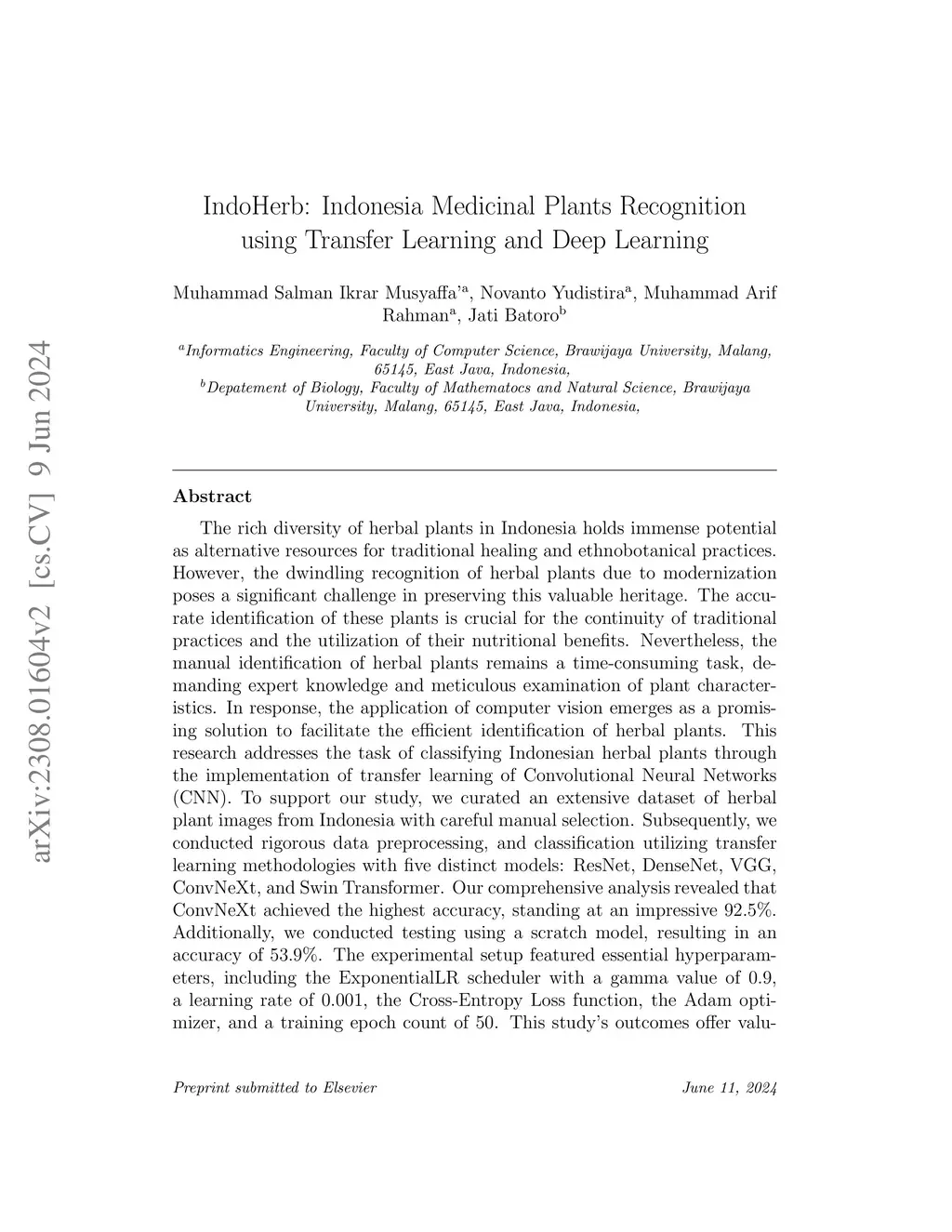IndoHerb: Indonesia Medicinal Plants Recognition using Transfer Learning