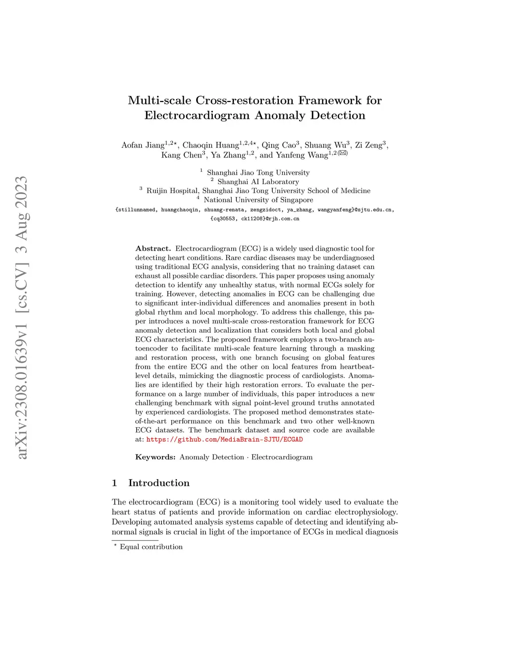 Multi-scale Cross-restoration Framework for Electrocardiogram Anomaly