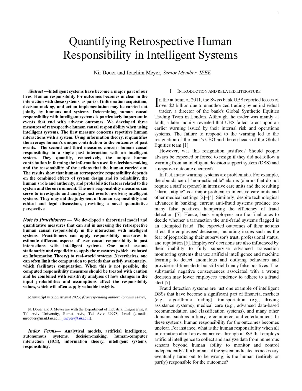 Quantifying Retrospective Human Responsibility in Intelligent Systems