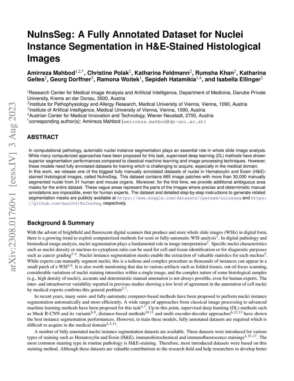 NuInsSeg: A Fully Annotated Dataset for Nuclei Instance Segmentation in