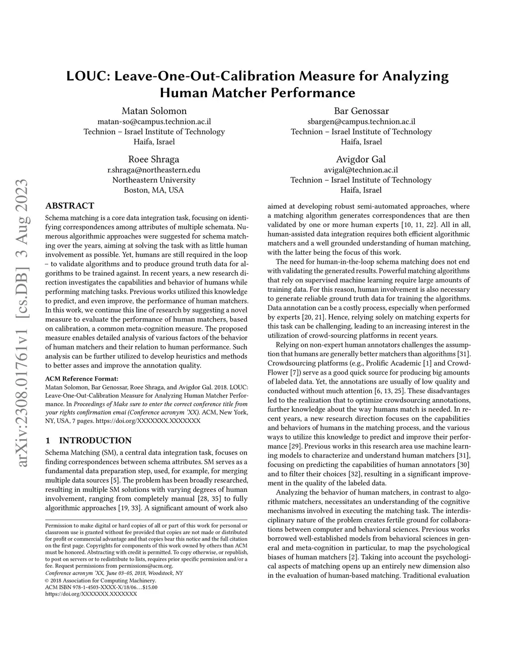 LOUC: Leave-One-Out-Calibration Measure for Analyzing Human Matcher