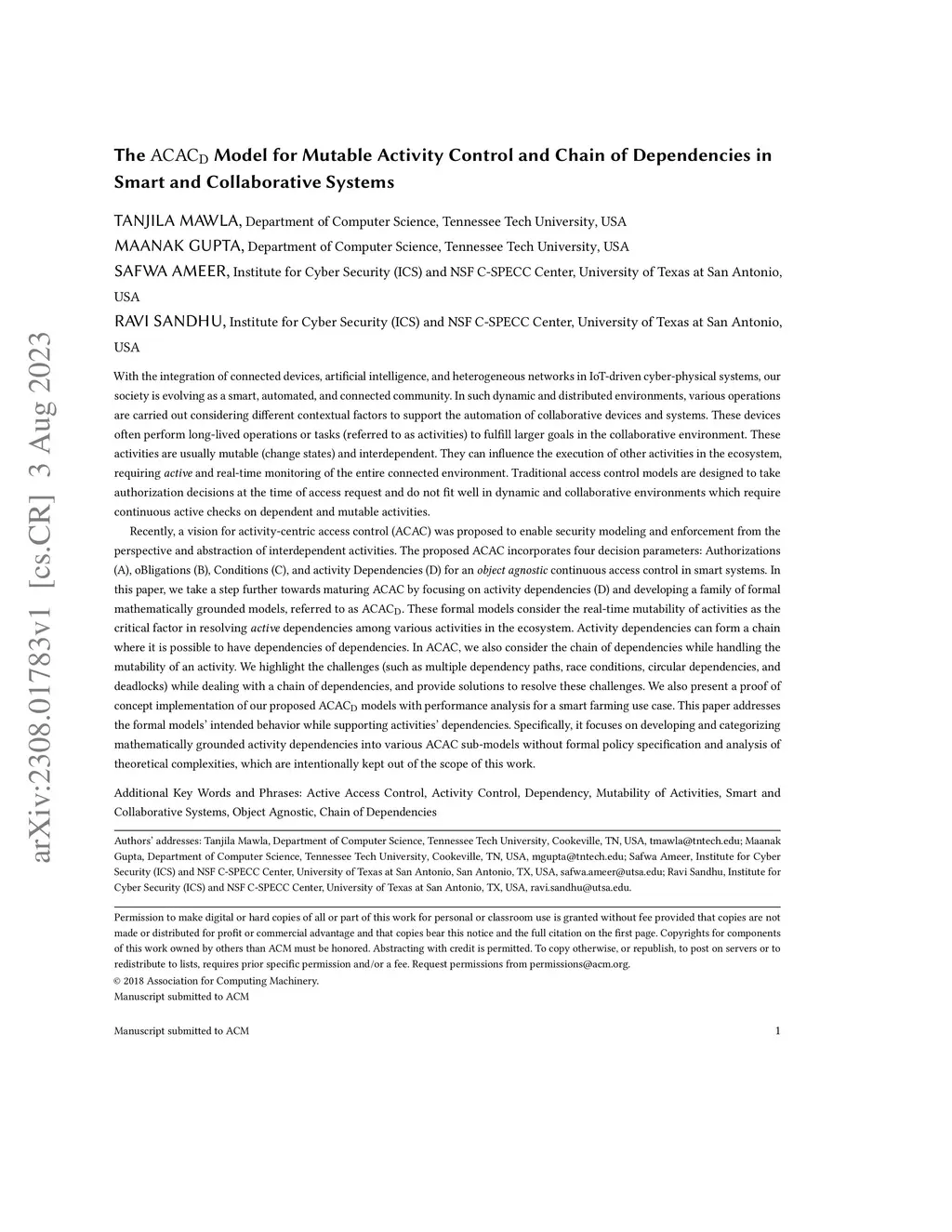 With the integration of connected devices, artificial intelligence, and heterogeneous networks in IoT-driven cyber-physical systems, our society is evolving as a smart, automated, and connected community. In such dynamic and distributed environments, various operations are carried out considering different contextual factors to support the automation of collaborative devices and systems. These devices often perform long-lived operations or tasks (referred to as activities) to fulfill larger goals in the collaborative environment. These activities are usually mutable (change states) and interdependent. They can influence the execution of other activities in the ecosystem, requiring active and real-time monitoring of the entire connected environment. Recently, a vision for activity-centric access control(ACAC) was proposed to enable security modeling and enforcement from the perspective and abstraction of interdependent activities. The proposed ACAC incorporates four decision parameters: Authorizations(A), oBligations(B), Conditions(C), and activity Dependencies(D) for an object agnostic access control in smart systems. In this paper, we take a step further towards maturing ACAC by focusing on activity dependencies(D) and developing a family of formal mathematically grounded models, referred to as ACAC_D. These formal models consider the real-time mutability of activities in resolving active dependencies among various activities in the ecosystem. Activity dependencies can form a chain where it is possible to have dependencies of dependencies. In ACAC, we also consider the chain of dependencies while handling the mutability of an activity. We highlight the challenges while dealing with chain of dependencies, and provide solutions to resolve these challenges. We also present a proof of concept implementation of with performance analysis for a smart farming use case.