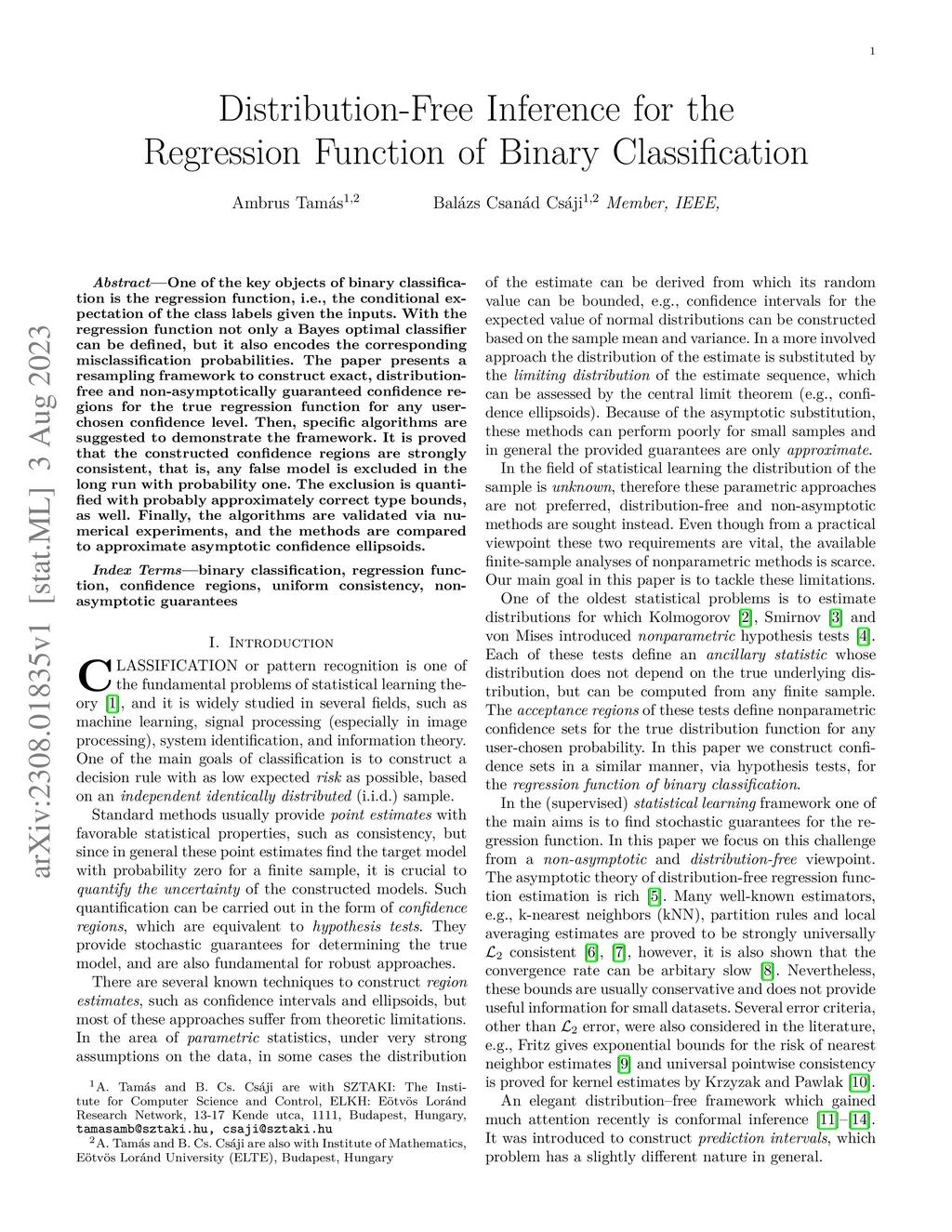 The regression function is one of the key objects of binary classification, since it not only determines a Bayes optimal classifier, hence, defines an optimal decision boundary, but also encodes the conditional distribution of the output given the input. In this paper we build distribution-free confidence regions for the regression function for any user-chosen confidence level and any finite sample size based on a resampling test. These regions are abstract, as the model class can be almost arbitrary, e.g., it does not have to be finitely parameterized. We prove the strong uniform consistency of a new empirical risk minimization based approach for model classes with finite pseudo-dimensions and inverse Lipschitz parameterizations. We provide exponential probably approximately correct bounds on the sizes of these regions, and demonstrate the ideas on specific models. Additionally, we also consider a k-nearest neighbors based method, for which we prove strong pointwise bounds on the probability of exclusion. Finally, the constructions are illustrated on a logistic model class and compared to the asymptotic ellipsoids of the maximum likelihood estimator.