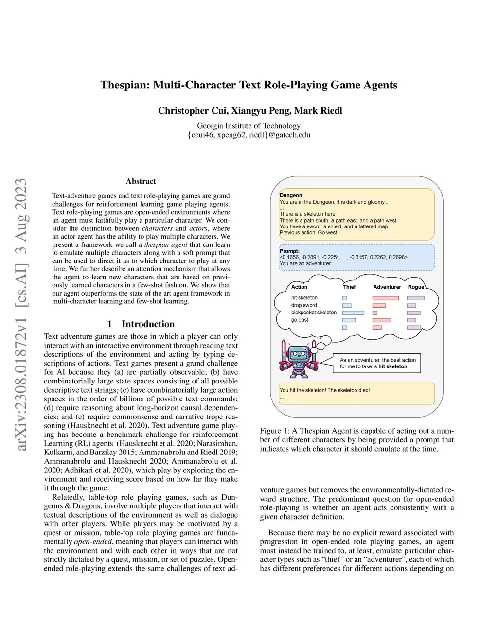 Thespian: Multi-Character Text Role-Playing Game Agents