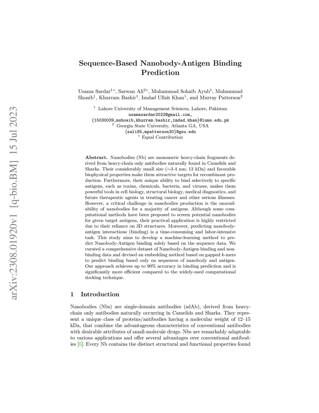 Sequence-Based Nanobody-Antigen Binding Prediction