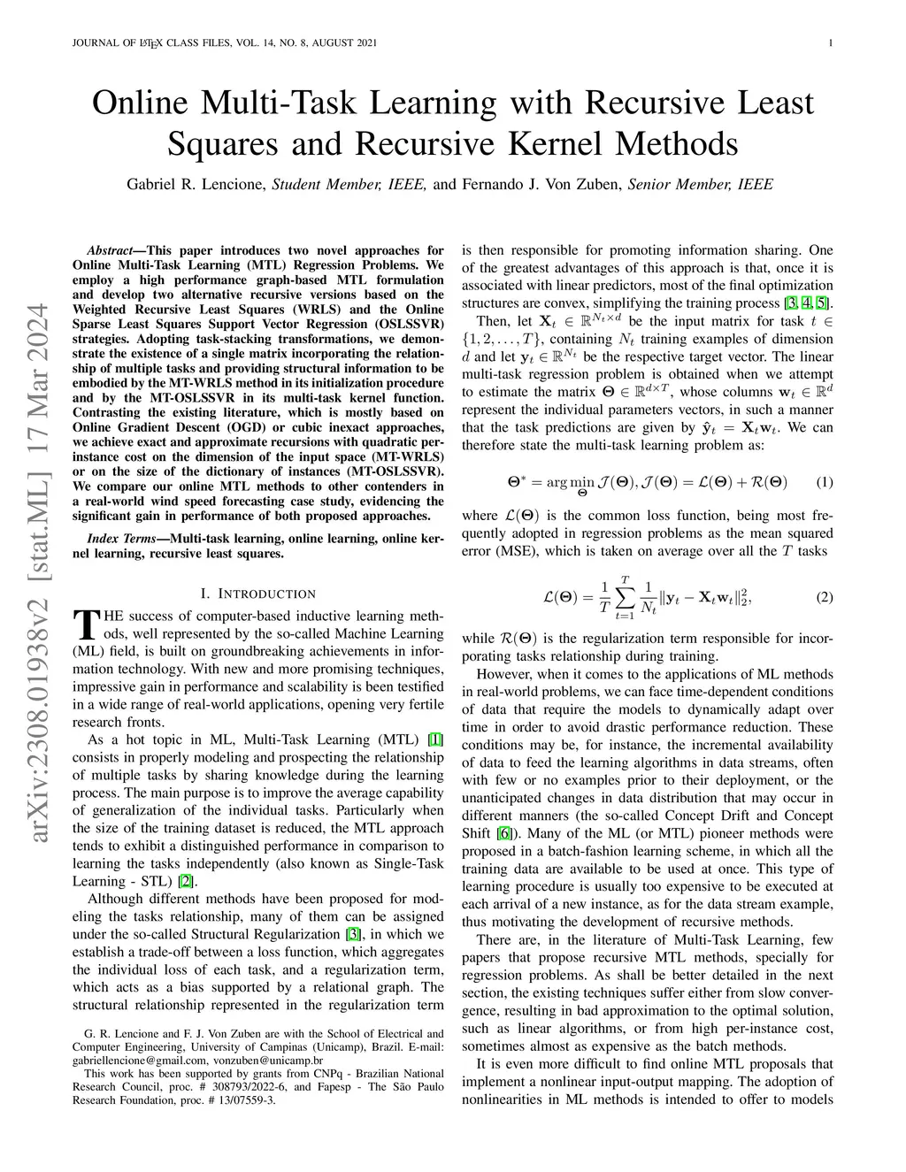Online Multi-Task Learning with Recursive Least Squares and Recursive