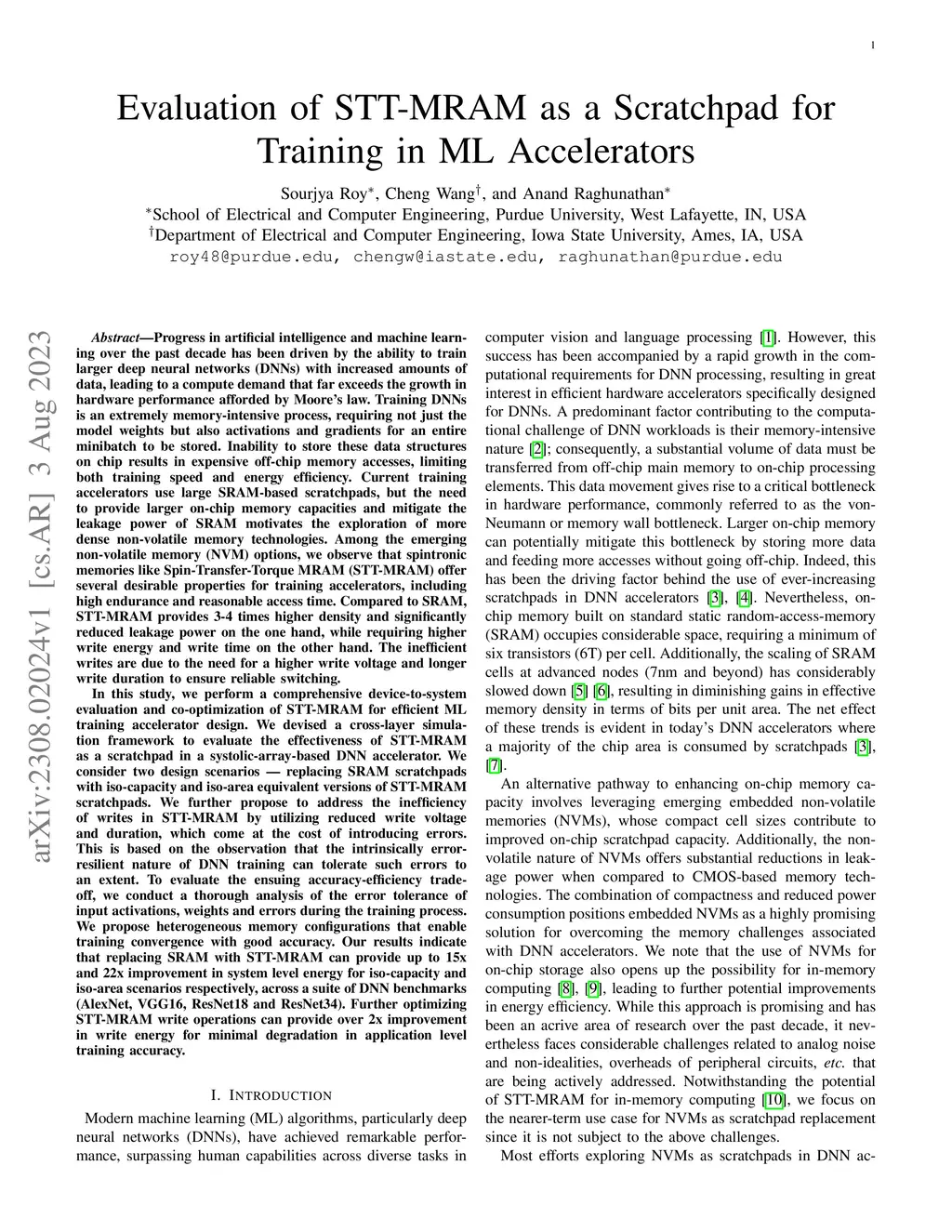 Evaluation of STT-MRAM as a Scratchpad for Training in ML Accelerators
