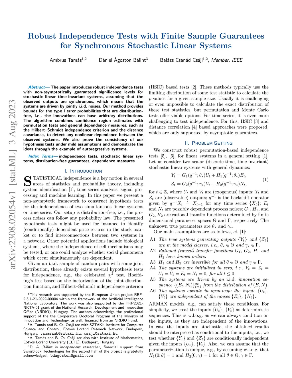 The paper introduces robust independence tests with non-asymptotically guaranteed significance levels for stochastic linear time-invariant systems, assuming that the observed outputs are synchronous, which means that the systems are driven by jointly i.i.d. noises. Our method provides bounds for the type I error probabilities that are distribution-free, i.e., the innovations can have arbitrary distributions. The algorithm combines confidence region estimates with permutation tests and general dependence measures, such as the Hilbert-Schmidt independence criterion and the distance covariance, to detect any nonlinear dependence between the observed systems. We also prove the consistency of our hypothesis tests under mild assumptions and demonstrate the ideas through the example of autoregressive systems.
