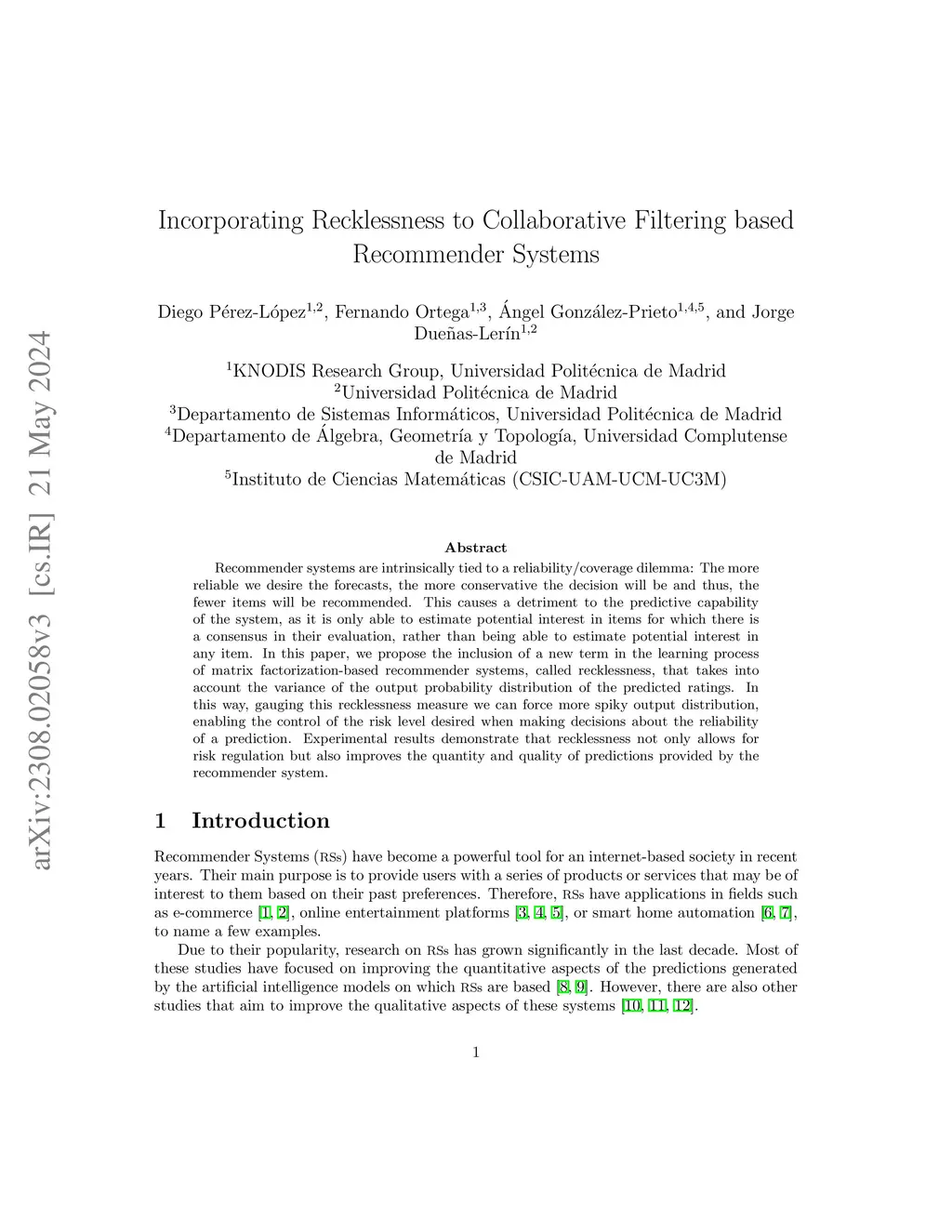 Incorporating Recklessness to Collaborative Filtering based Recommender