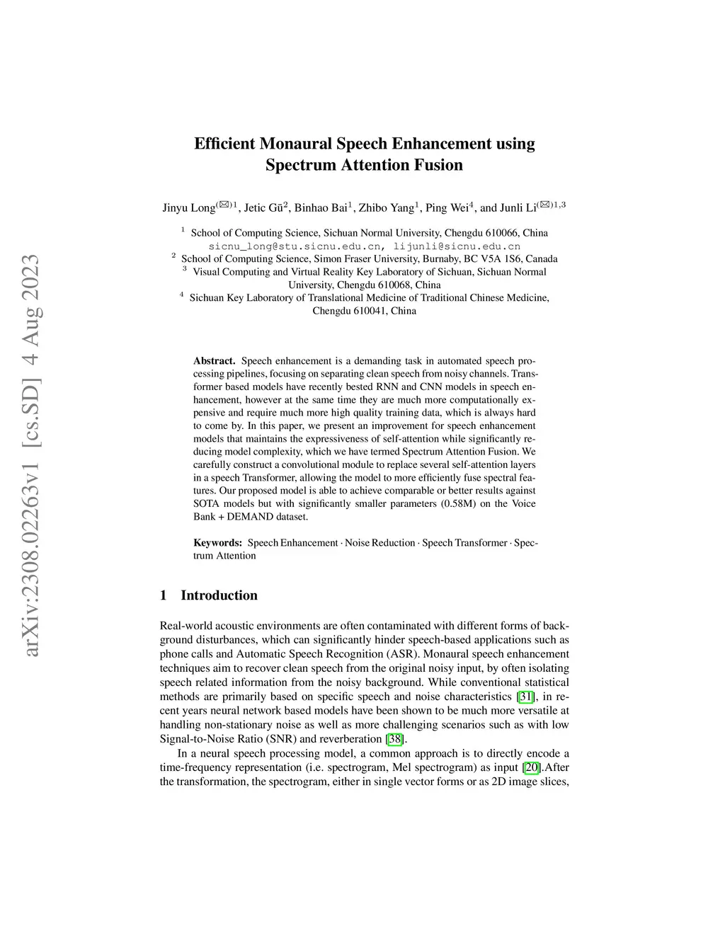 Efficient Monaural Speech Enhancement using Spectrum Attention Fusion