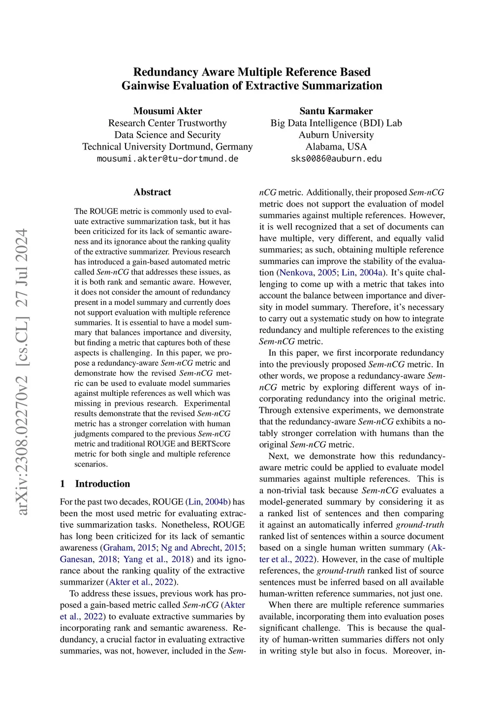 Redundancy Aware Multi-Reference Based Gainwise Evaluation of Extractive