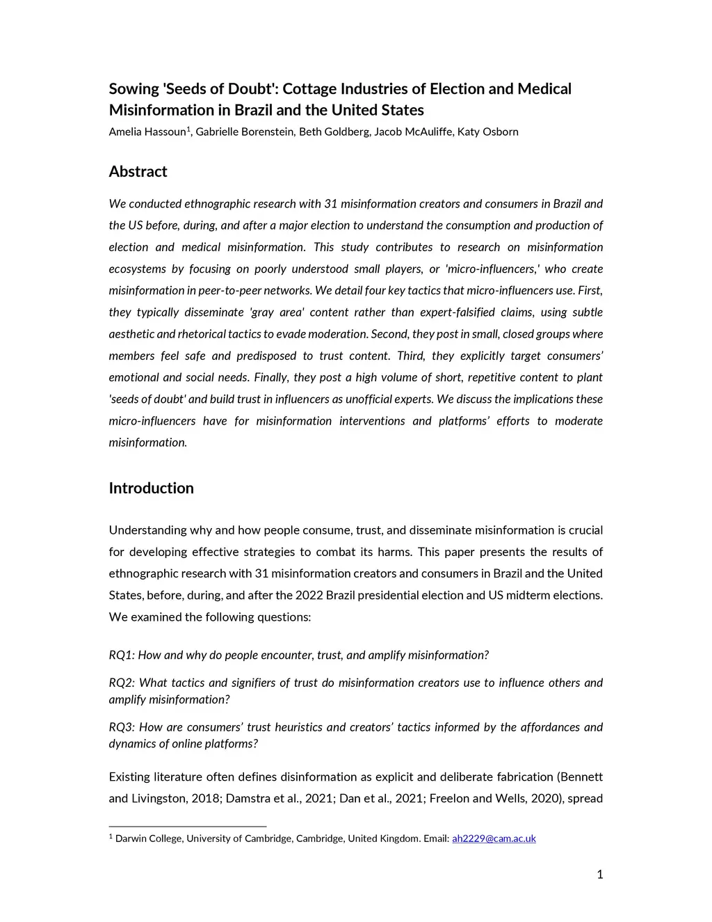 Misinformation in Brazil and the United States